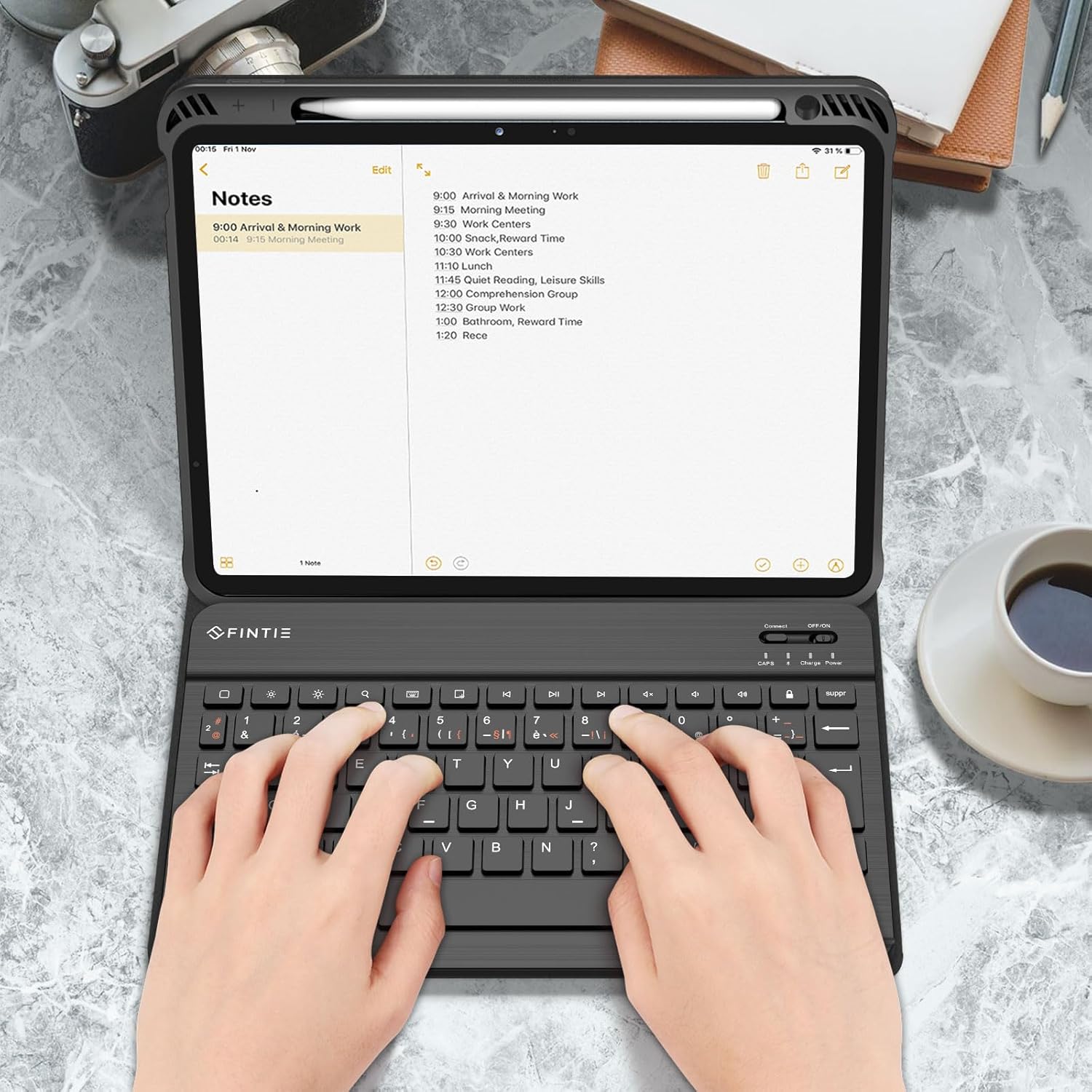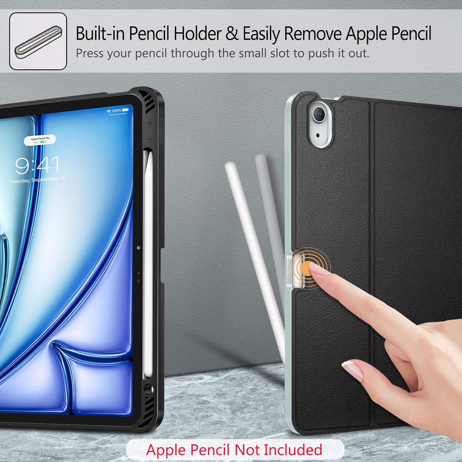 - Das magnetische Anheften sowie das schnurlose Aufladen des Pencils 2nd Gen wird trotz Schutzhülle problemlos unterstützt. Mit der integrierten Stifthalterung lässt sich der Apple Pencil sicher transportieren. Präzise Ausschneidungen ermöglichen