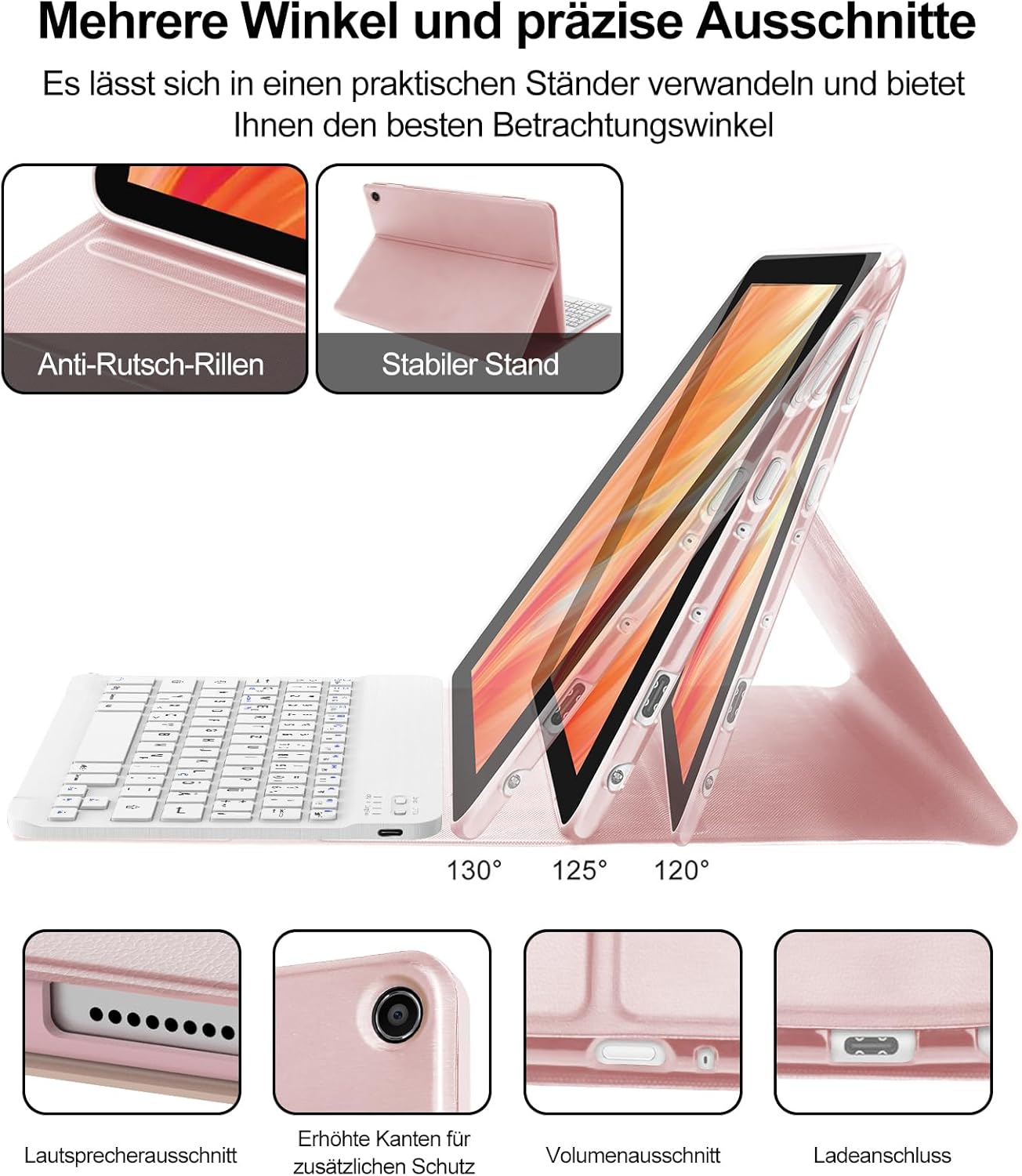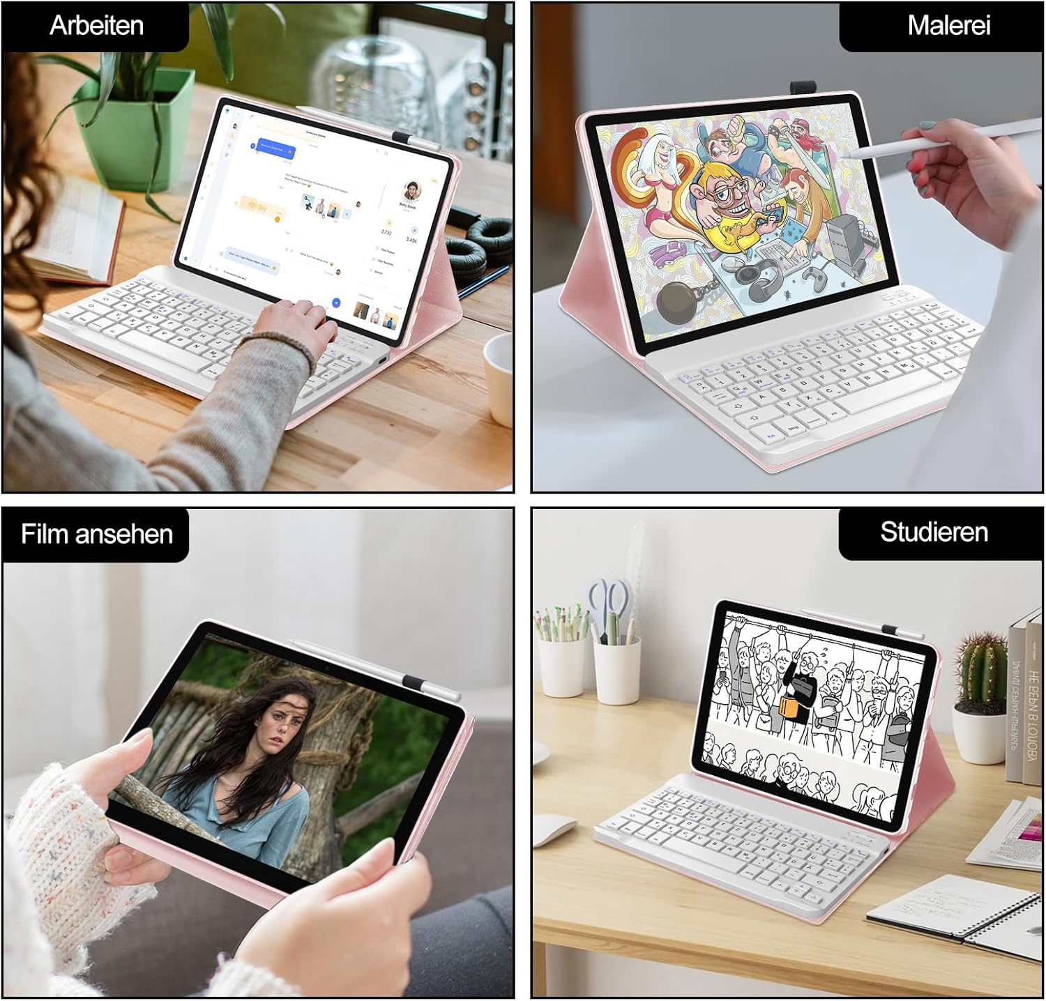 • QWERTZ Abnehmbare Tastature - Bluetooth 5.3 erhöht die Tippgeschwindigkeit um 30%, sodass Sie bei jedem Schritt des HD10 eine gute Verbindung herstellen können. Das Schreiben auf einer echten Tastatur ist viel komfortabler als das Schreiben auf der