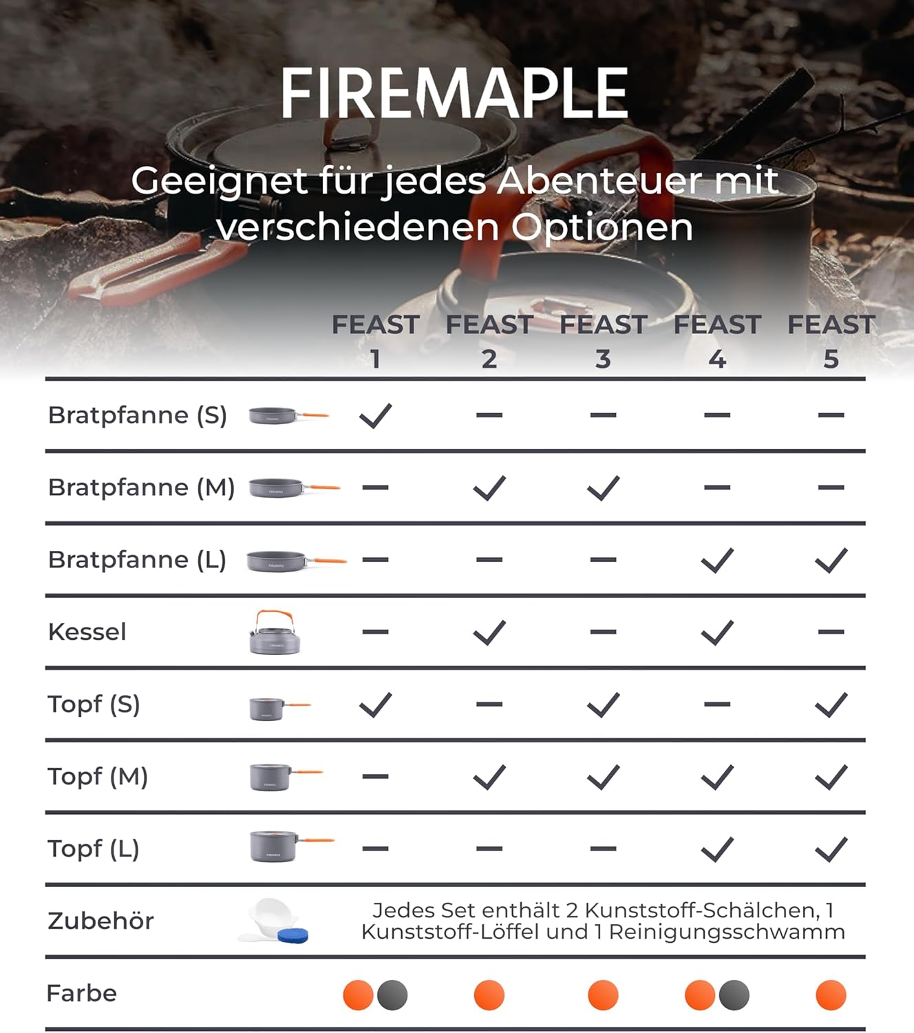 - MEHRERE FUNKTIONEN ✅ mit dem FireMaple Kochgeschirr Set können alle möglichen Gerichte im Freien zubereitet werden, ob Braten, Kochen, oder Erhitzen.