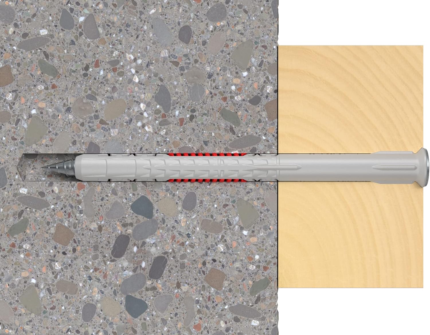 - Anwendungsgebiete: Der Nylondübel besteht aus 2 Materialkomponenten, die eine abgestimmte Kombination aus Design und Material bieten, ideal geeignet für alle Montagearbeiten wie das Anbringen von Fassadenkonstruktionen, Carports und Fensterrahmen in