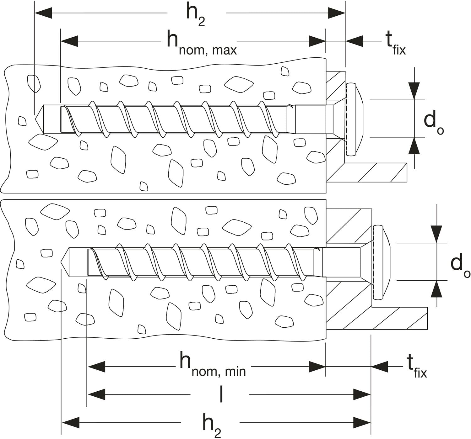 - Anwendungsgebiete: Die Betonschraube eignet sich für oberflächenbündige, optisch anspruchsvolle Installationen von Rohr- und Kabeltrassen, Lochbändern sowie Montageschienen in Baustoffen wie gerissenem und ungerissenem Beton, Mauerwerk und
