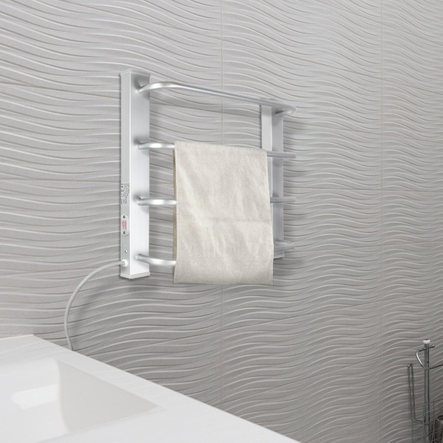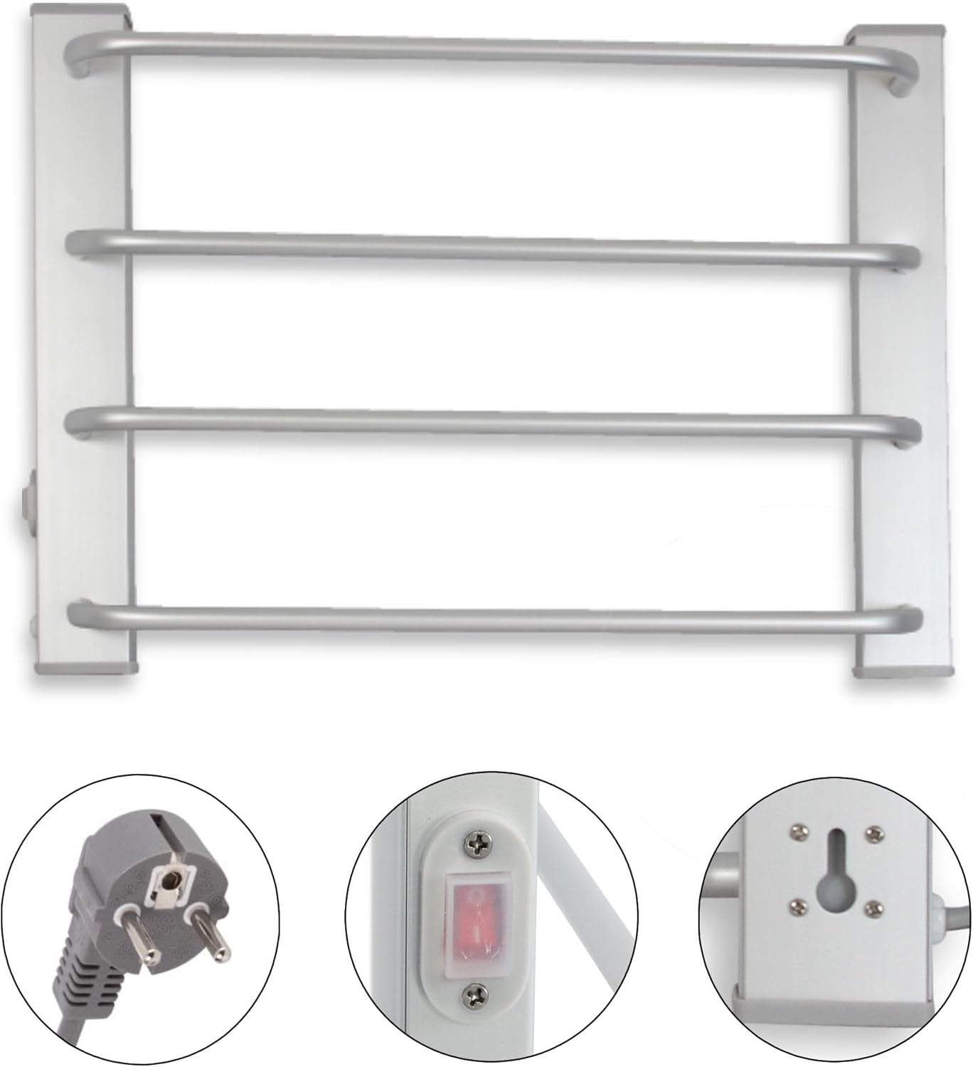 - ♨️ - EIN/AUS - Dieser elektrische Handtuchtrockner verfügt nicht über einen Thermostat. Der beheizte Handtuchhalter verfügt über einen EIN/AUS-Schalter mit Gummischutz gegen Spritzer.