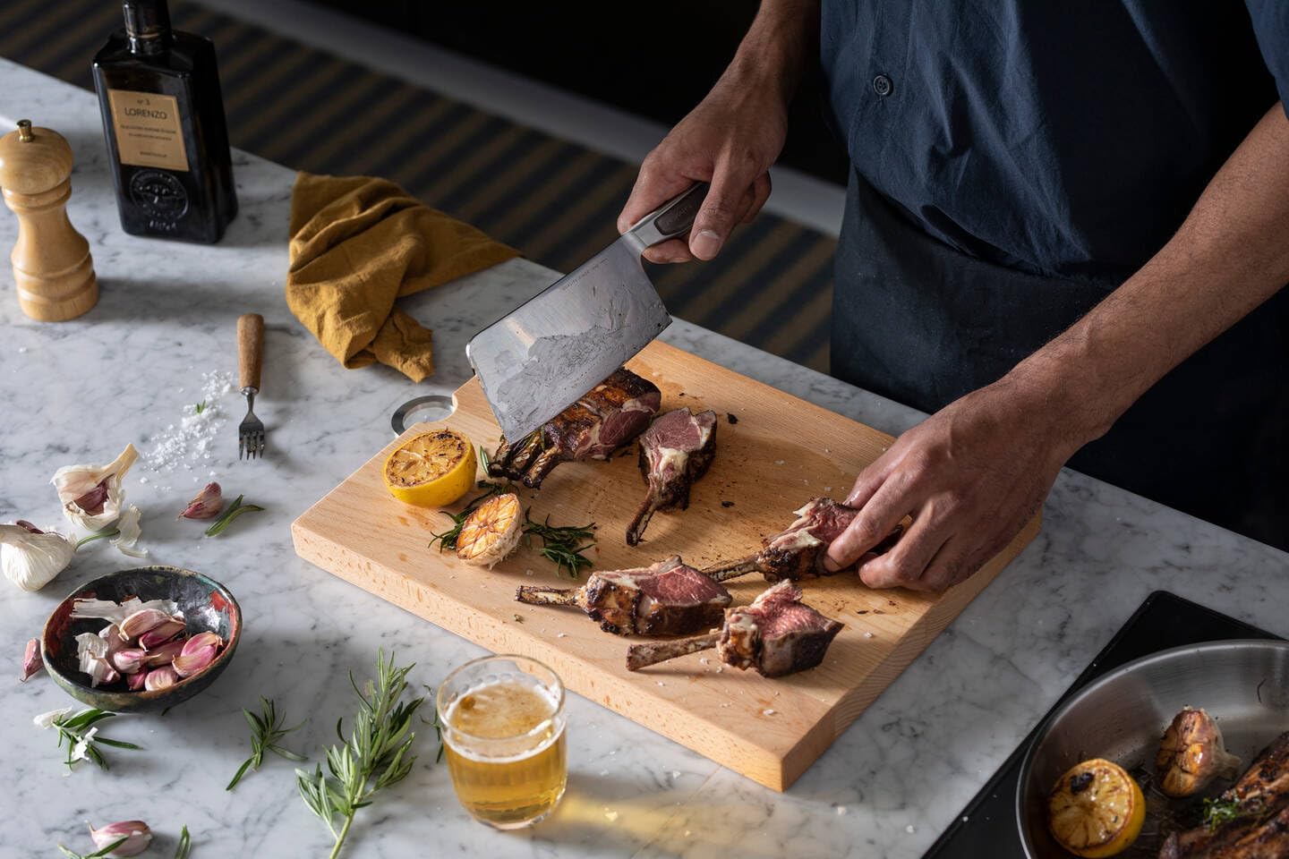 - Leistungsstarkes, in Finnland entworfenes All Steel Hackmesser mit breiter Klinge zum Hacken und Schneiden von Fleisch, Fisch, Gemüse, Knochen und mehr, Klingenlänge: 28,1 cm