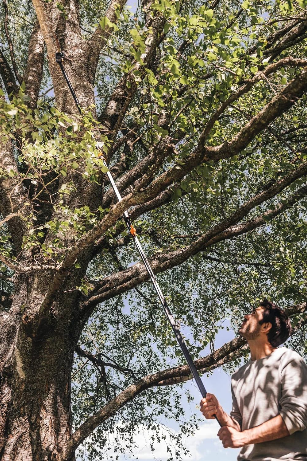 - Sehr langer Stiel für Äste in grosser Höhe, Innen liegendes Seilsystem durch Ziehen des Endgriffs für optimale Kraftübertragung und müheloses Schneiden, Griff mit rutsch- und verschleissfester Beschichtung