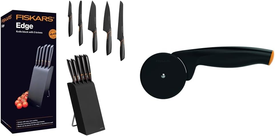 Fiskars Design-Messerblock mit 5 Messern, Breite: 15,5 cm, Höhe: 37 cm, Birkenholz, Schwarz, Edge, 1