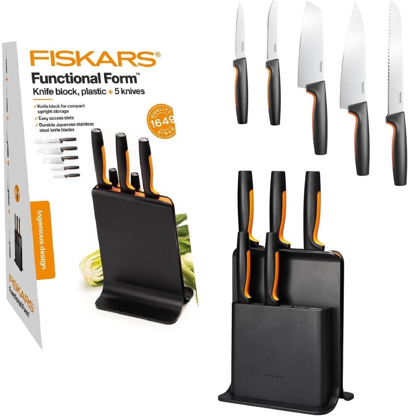 Fiskars Design-Messerblock mit 5 Messern, Functional Form, Inklusive Gemüsemesser, Tomatenmesser, Sa