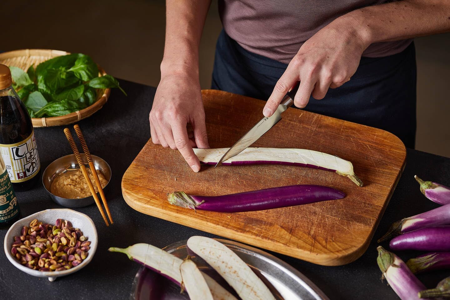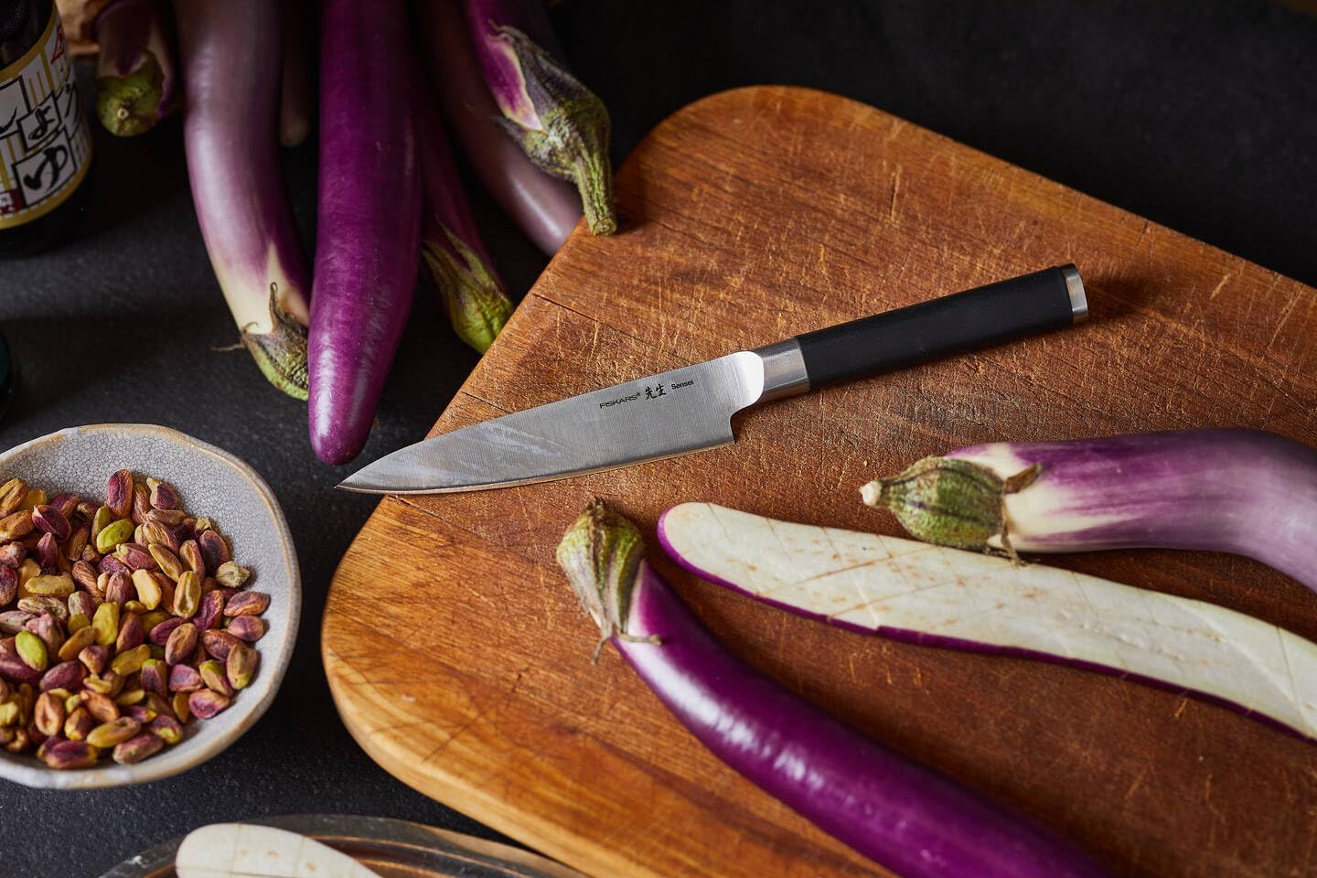 - Japanisches Gemüsemesser (Klingenlänge: 12 cm) für Profis und Hobbyköche zum Schneiden von Kräutern und Gemüse, Optimal geeignet für Rechts- und Linkshänder sowie für unterschiedlich grosse Hände