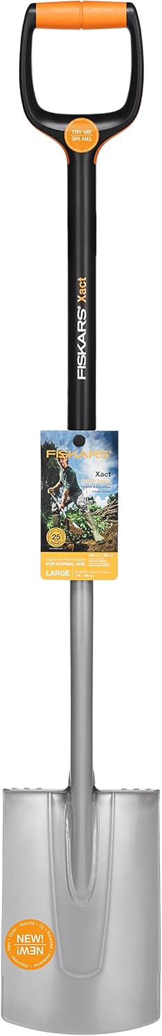 • Lieferumfang: 1x Fiskars Xact Gärtnerspaten, Rund, L, Länge: 120 cm, Gewicht: 2,06 kg, Material: Qualitätsstahl/Glasfaserverstärkter Kunststoff, Farbe: Schwarz/Orange, 1003681