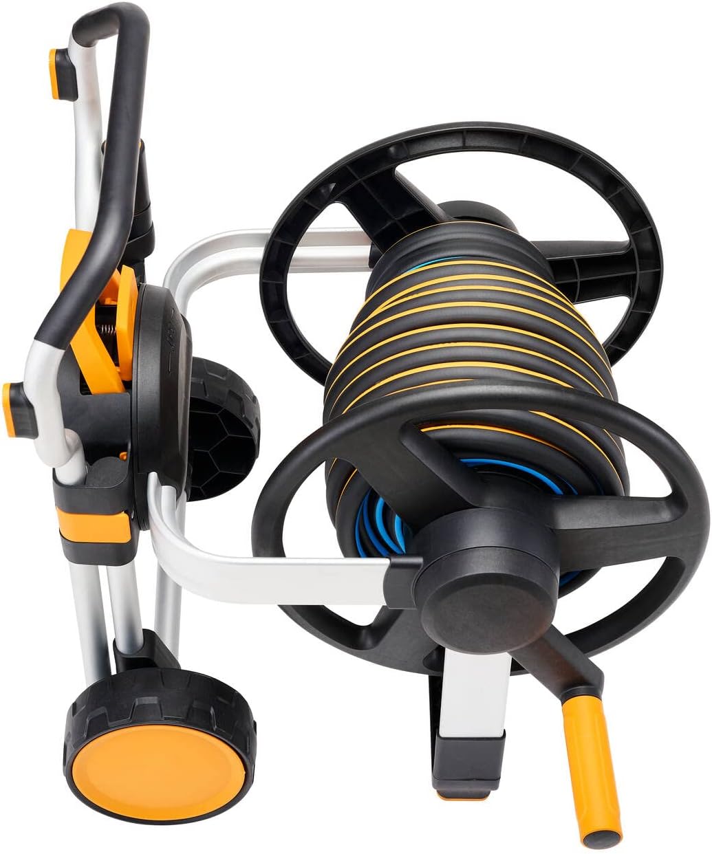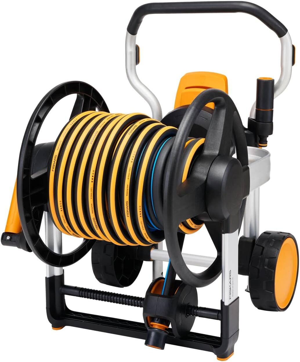- Lieferumfang: 1x Fiskars Manuelles Waterwheel XL Bewässerungs-Set mit Schlauchtrommel, Zulauf- und Gartenschlauch, Schlauchanschlüssen, Hahnverbinder und Sprühdüse, Schwarz/Orange, 1062256