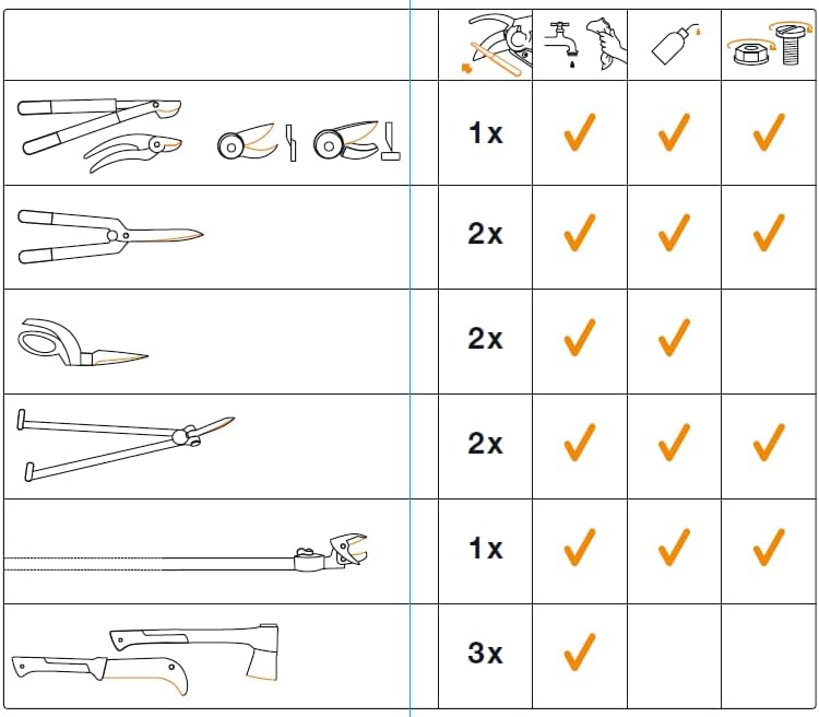 - Pflegeanleitung mit wichtigen Tipps zum richtigen Nachschärfen, Ölen, Reinigen und Lagern der Gartenwerkzeuge