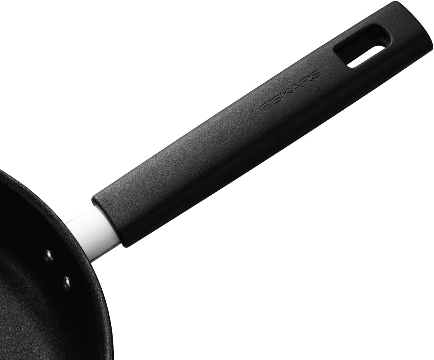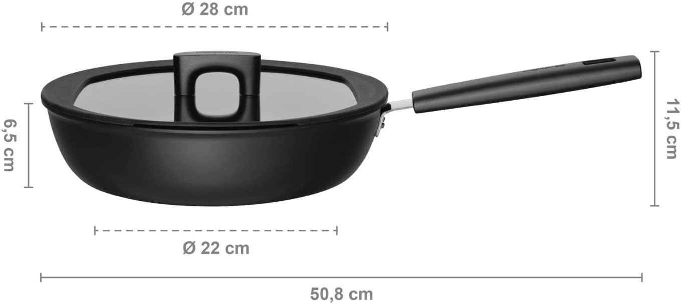 - Lieferumfang: 1x Fiskars Sautierpfanne mit Deckel, Ø 28 cm, 3,5 Liter, Hard Face, Masse: 50,7 x 30 x 11,5 cm, Gewicht: 2,25 kg, Material: Aluminium/Kunststoff, Farbe: Schwarz, 1052232