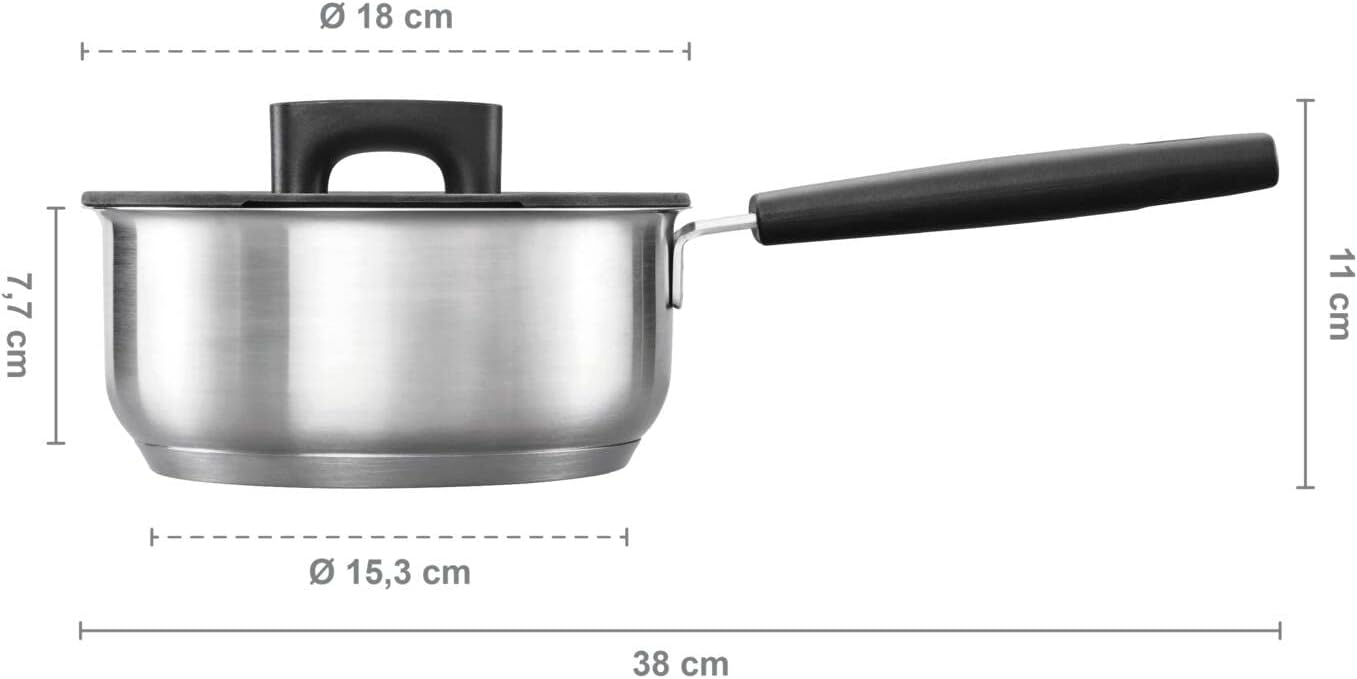 - Lieferumfang: 1x Fiskars Stieltopf mit Deckel, 1,8 Liter, Hard Face, Masse: 38,5 x 20 x 10,7 cm, Gewicht: 1,23 kg, Material: Rostfreier Stahl/Kunststoff, Farbe: Silber, 1052239