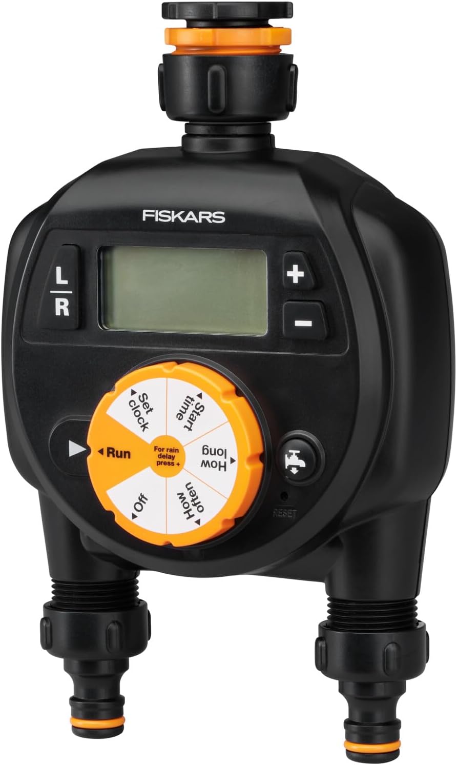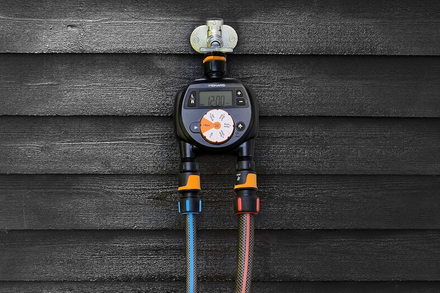 - Lieferumfang: 1x Fiskars Zeitschaltuhr/Timer mit 2 Ausgängen, 2x AA-Batterien nicht im Lieferumfang enthalten, Masse: (LxBxH): 6,48x13,8x21,5 cm, Gewicht: 580 g, Schwarz/Orange, 1054792