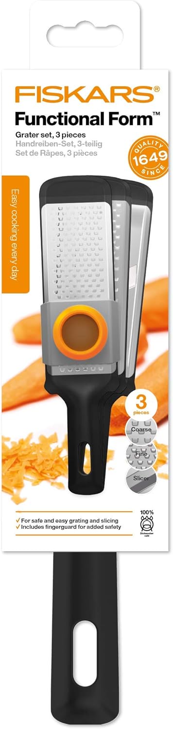Fiskars Gemüsehobel und -reiben-Set, 3-teilig., Metall/Kunststoff, Functional Form, 1014414 Hobel+Re