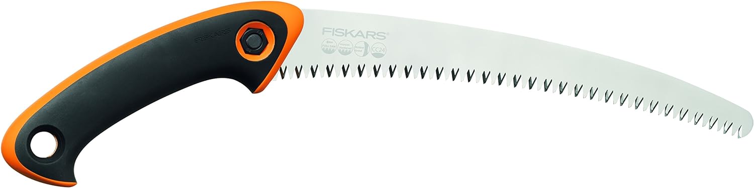 - Lieferumfang: 1x Fiskars Profi Handsäge SW-240 mit Aufbewahrungsköcher, Grobzahnung, Gesamtlänge: 40 cm, Sägeblattlänge: 24 cm, Gewicht: 200 g, Material: Hochwertiger Stahl/Kunststoff, Farbe: Schwarz/Orange, 1020200