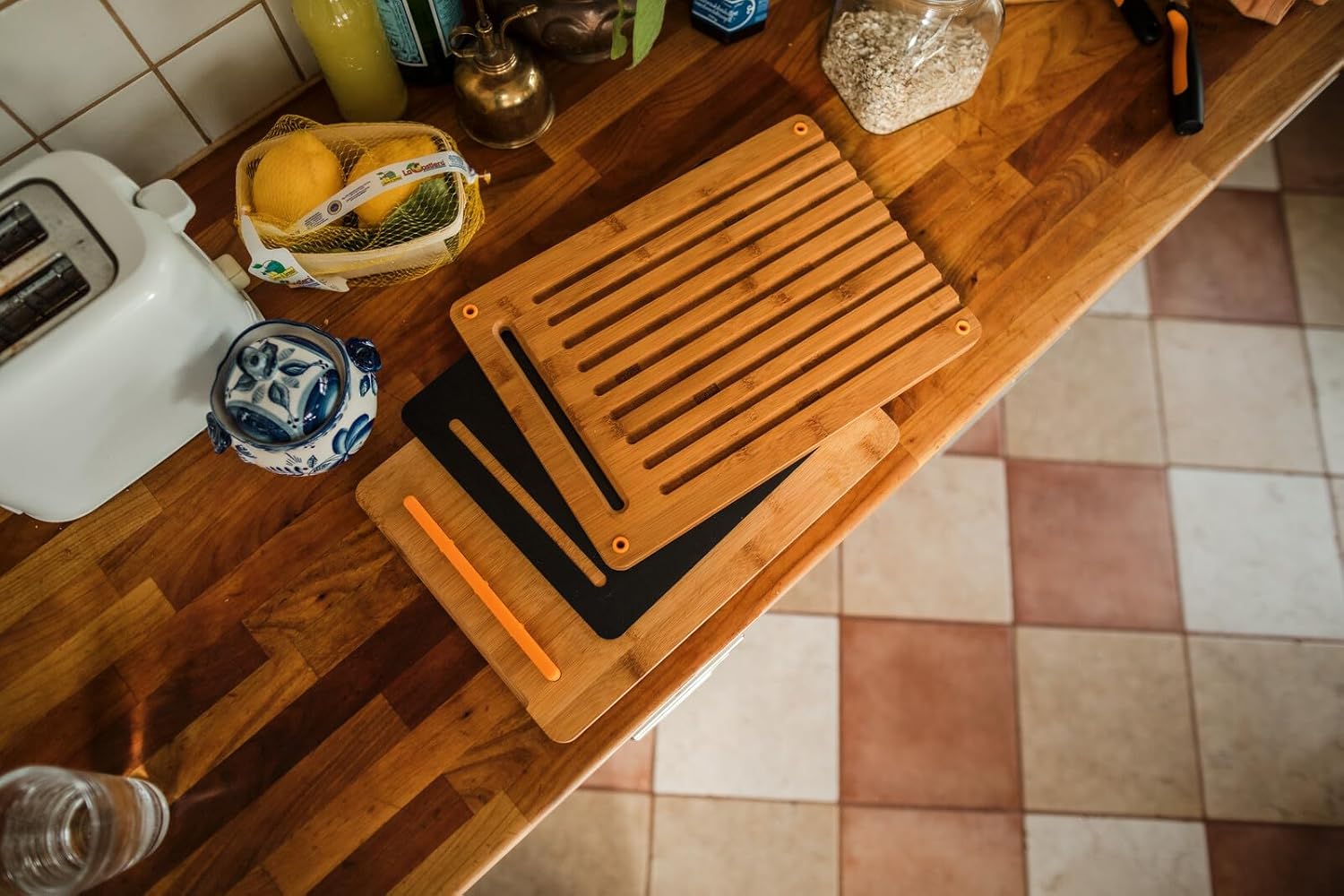 - Geschlitztes Brett zum Schneiden von Brot, Silikonnoppen halten die Bretter beim Schneiden an Ort und Stelle, Hygienisches und geruchsfreies Zubereiten von Lebensmitteln durch austauschbare Schneidauflagen