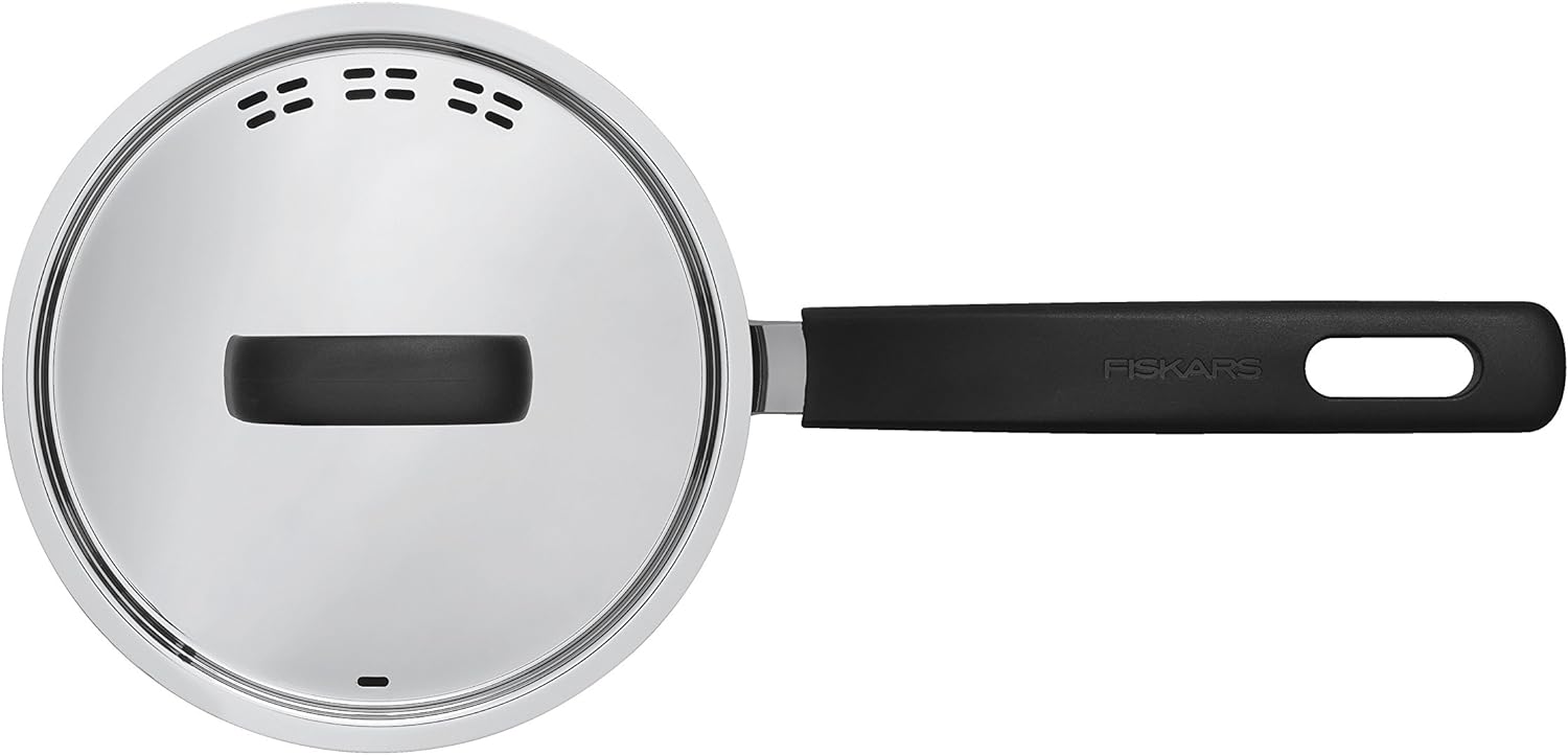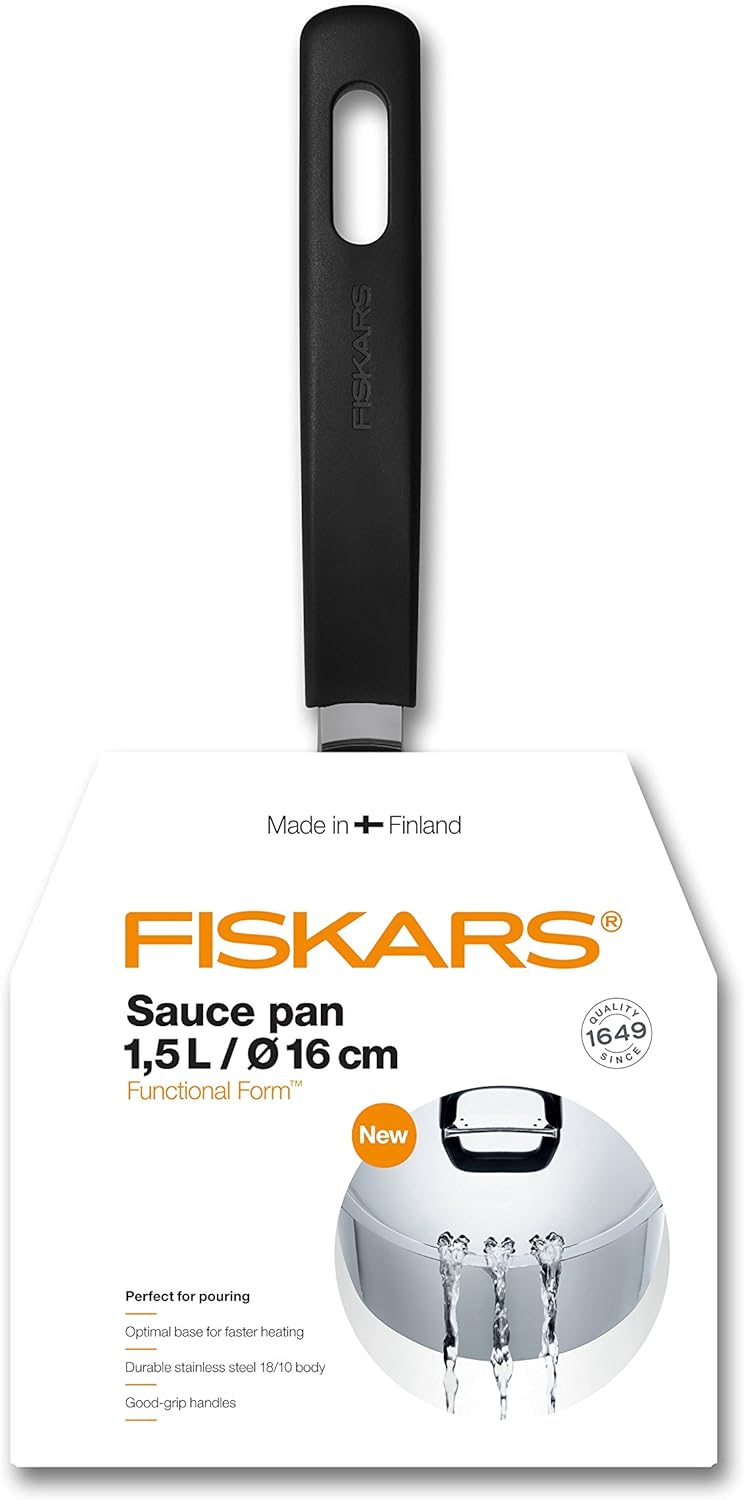 - Lieferumfang: 1x Fiskars Stieltopf mit Deckel Functional Form, 1,5 Liter, Masse: 36 x 18,3 x 9 cm, Gewicht: 770, Gramm, Material: Rostfreier Stahl/Kunststoff, Farbe: Silber/Schwarz, 1015316