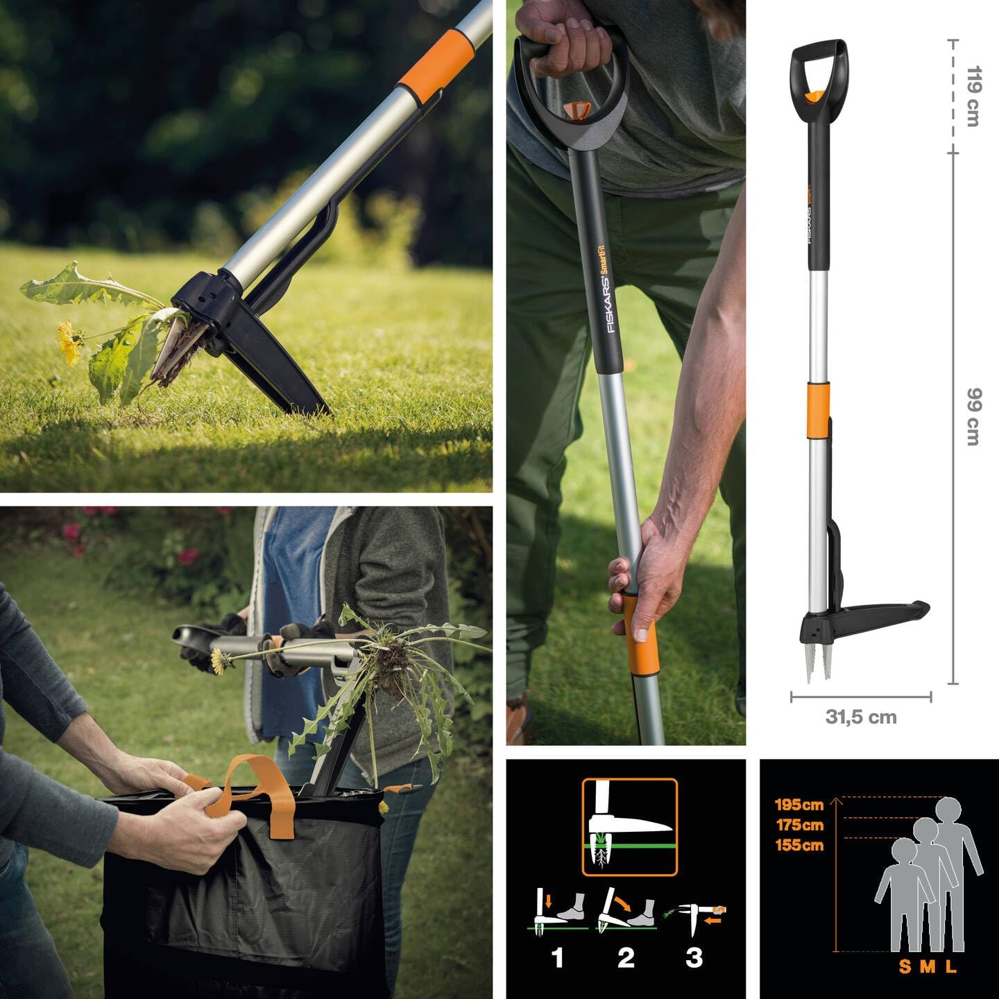 - Lieferumfang: 1x Fiskars SmartFit Teleskop-Unkrautstecher, Länge: 1 - 1,19 m, Durchmesser: 3 cm, Gewicht: 1,25 kg, Material: Stahl/Kunststoff, Farbe: Schwarz/Orange, 1020125