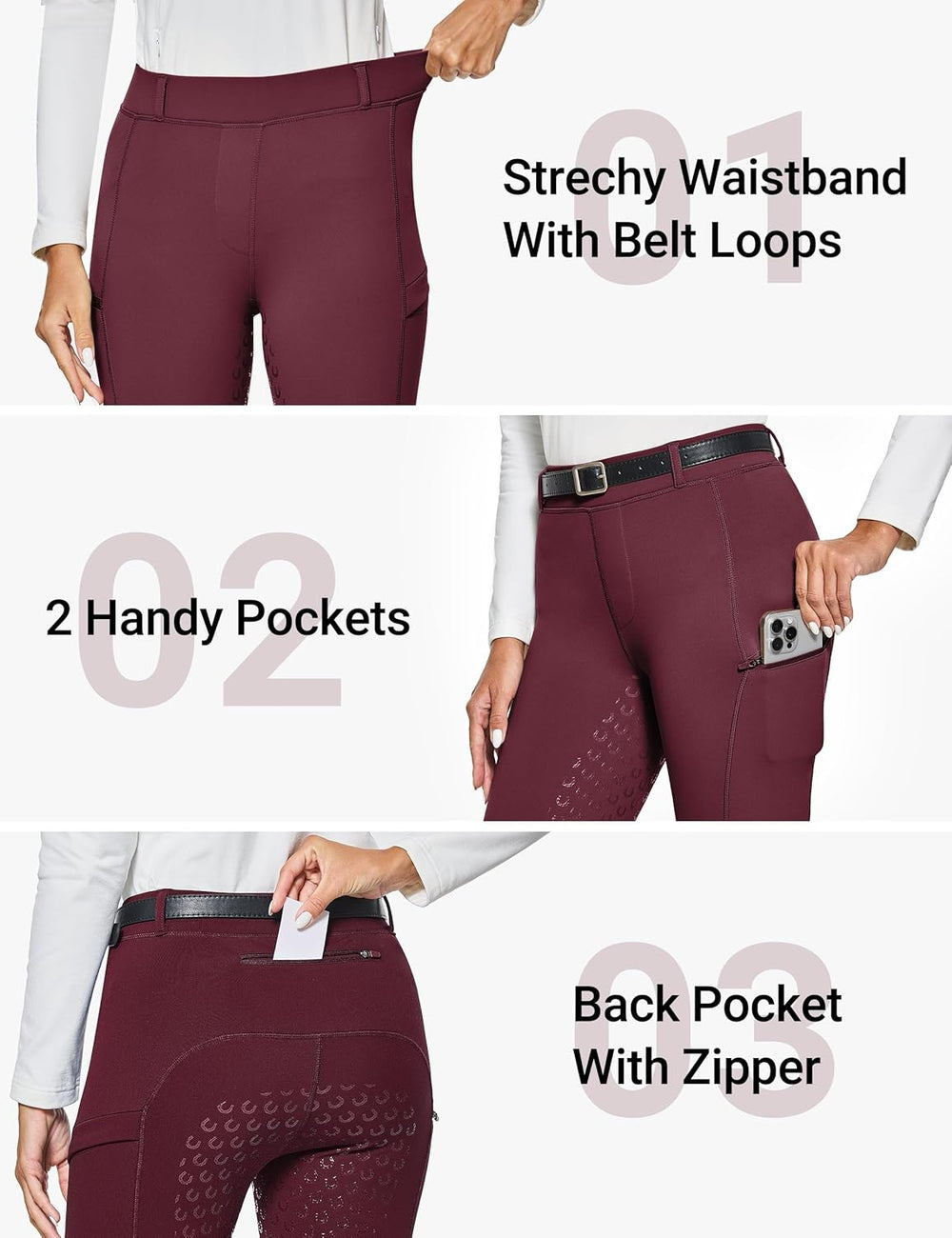 - Funktionelle Aufbewahrung: 2 Seitentaschen und 1 Reissverschlusstaschen auf der Rückseite für kleine Gegenstände wie Pferdesnacks, Telefon oder Schlüssel.