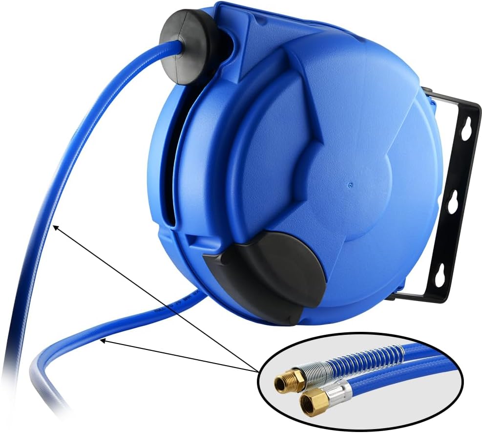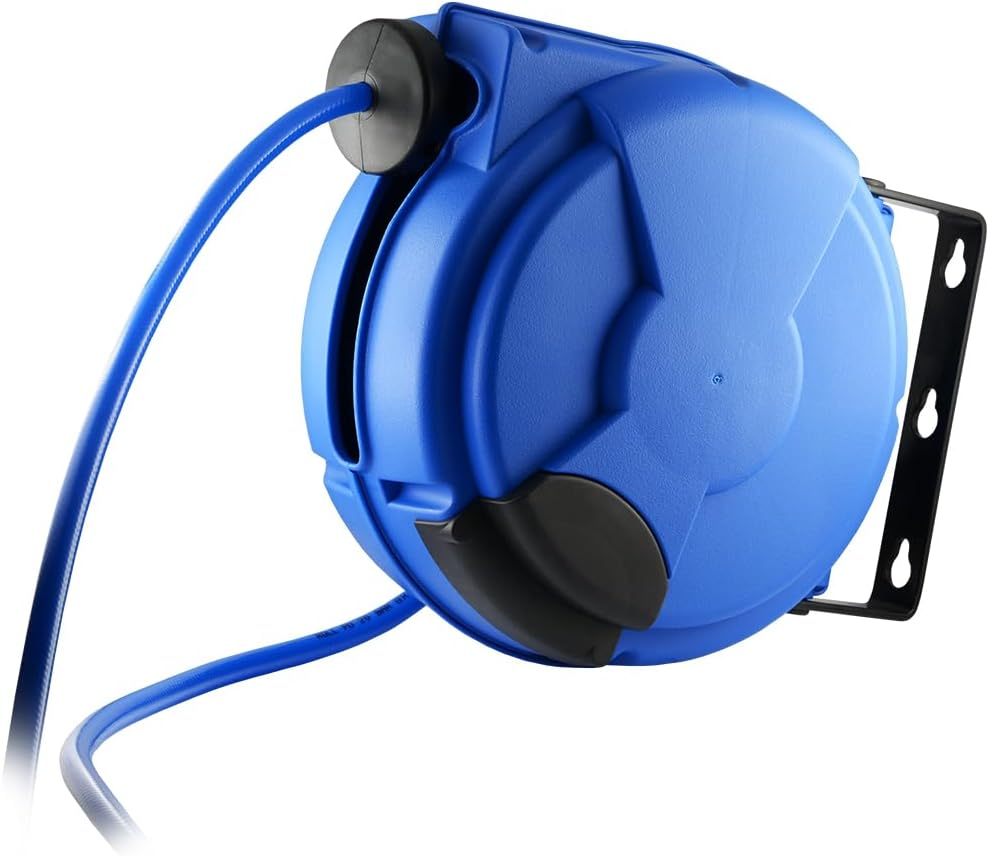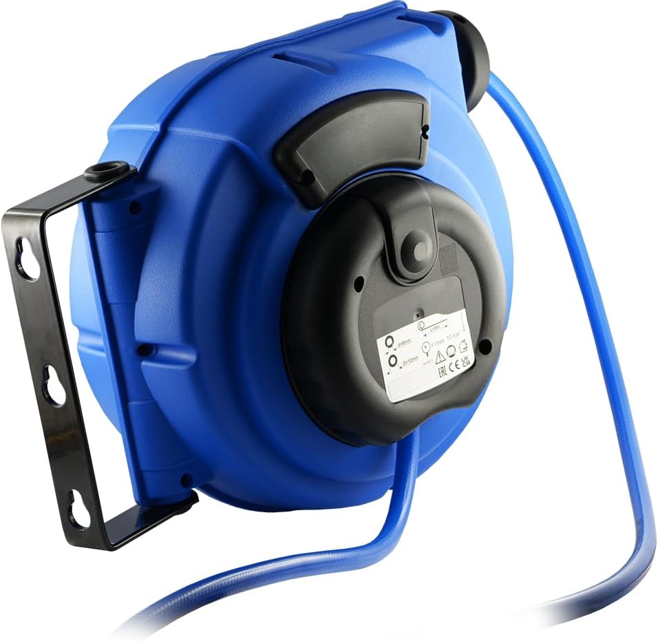 - Lieferumfang: Automatischer Schlauchaufroller mit Schlauch, Stopper und Gewindetüllen an den Schlauchenden, Befestigungsbügel (schwenkbar)
