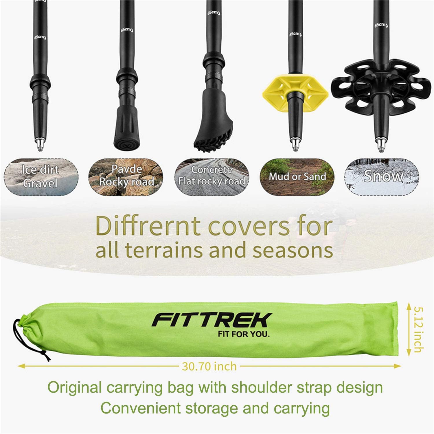 - ✅GROSSE EIGENSCHAFTEN - Jedes Wanderstockset wird mit 4 Arten von Gummispitzen geliefert, mit denen die Stöcke auf Schlamm, Schnee, Pflaster oder glatten Steinen verwendet werden können. Sie haben auch eine eingebaute Hartmetallspitze für Schotter,