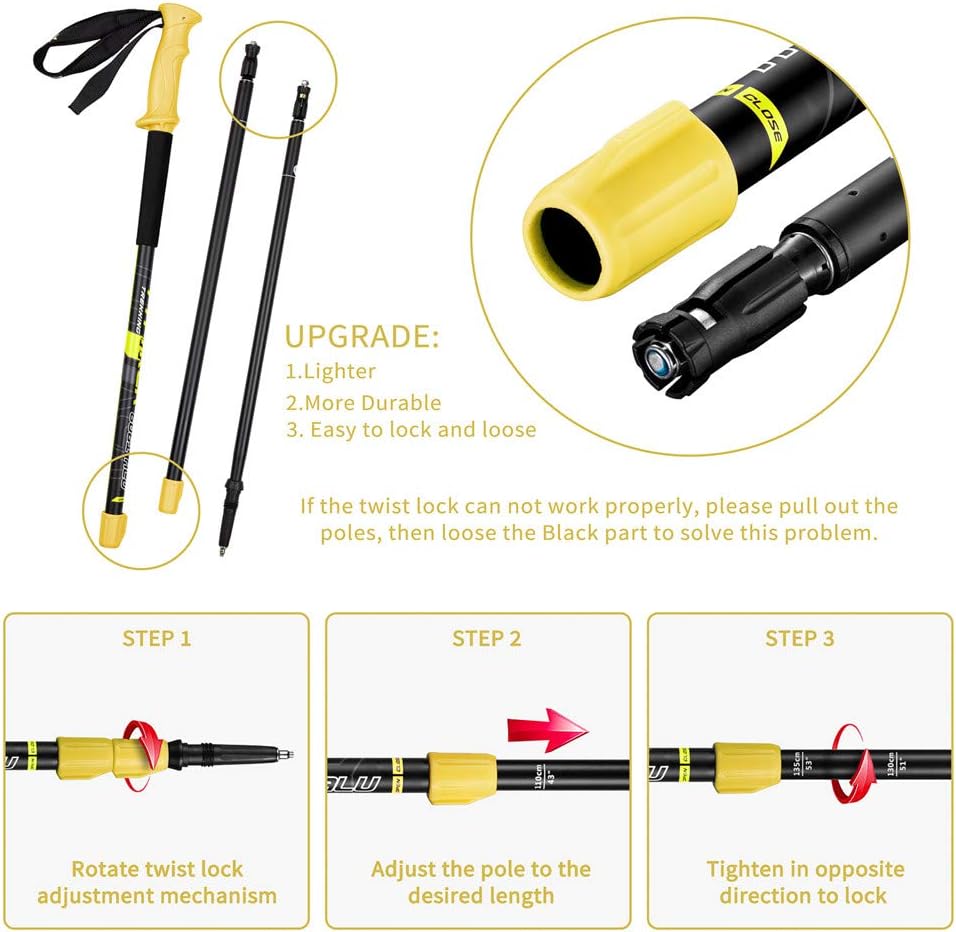 • ✅GREAT FEATURES - JedesWanderstocksetwirdmit 4 Arten von Gummispitzengeliefert, um die Stöcke auf Schlamm, Schnee, Pflasteroderglatten Felsen zuverwenden. Sie habenaucheineeingebaute in MetallspitzefürKies, hart verpacktWegenoderEis.