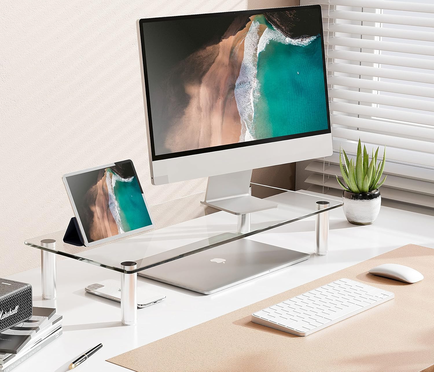 - 【Gute Qualität】6mm gehärtetes Glas, 95 mm Höhe,Erhöhen Sie effektiv die höhe des monitorständersmit.Anti-Rutsch-Pads macht dieser laptop-druckerständer elegant und stabil.