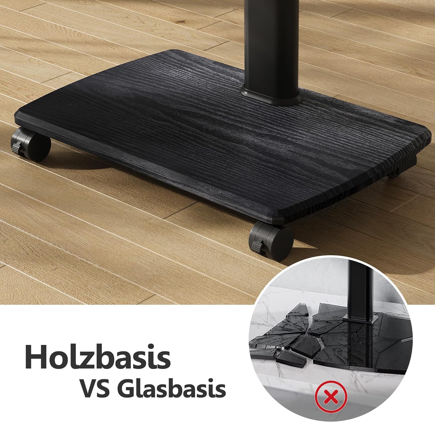 FITUEYES TV Bodenständer Rollbar mit Holzablage TV Standfuss TV Ständer Fernsehstand mit Rollen höhe