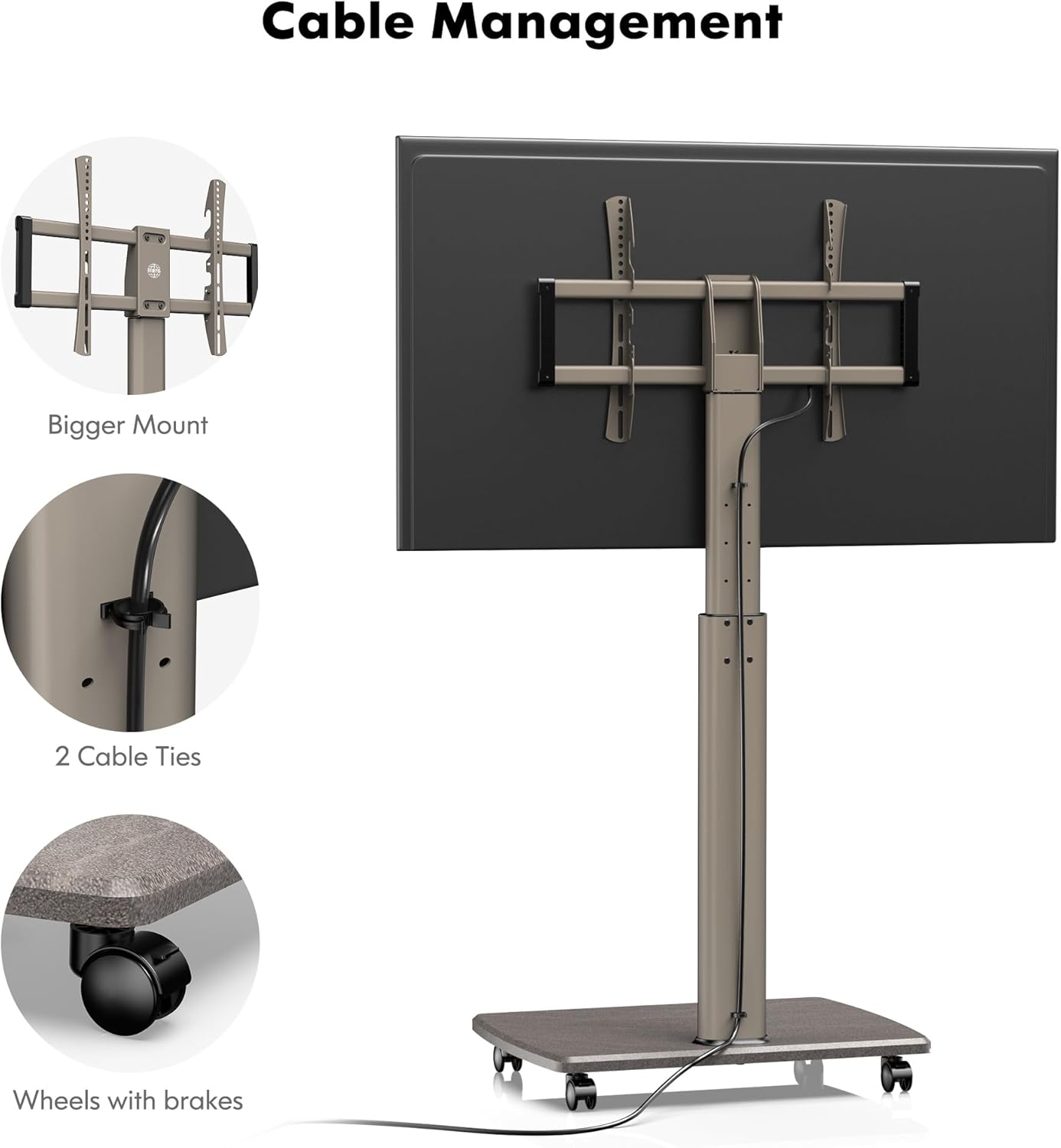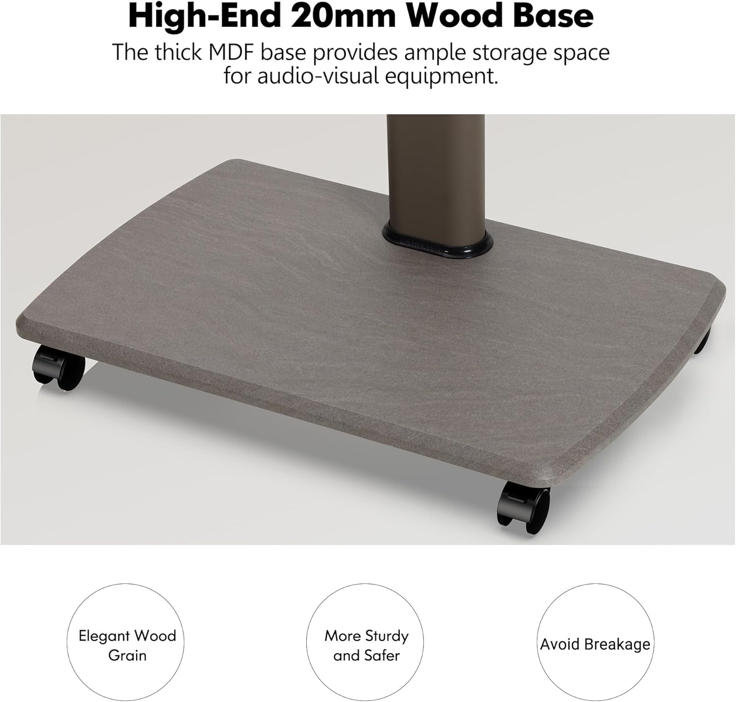 - 【Praktisch und Stabil】Dank Möbel-Rollen lässt sich der TV-Ständer im Raum rollen. 20mm Bodenplatte aus Holz bietet einen stabilen und dauerhaftigen Halt. Anti-Fingerabdruck und NICHT zerbrechlich. Auf der Platte können HiFi-Geräte wie DVD-Player