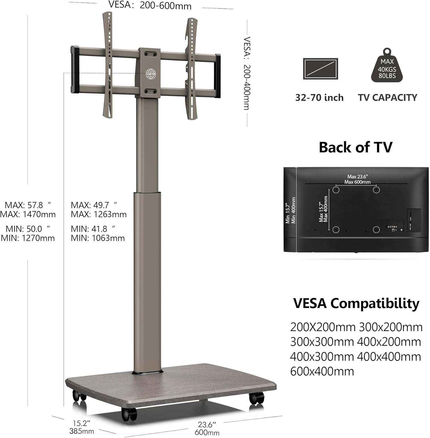 - 【Universell und Kompatibel】Geeignet für TV-Geräte, PC-Monitore mit Bildschirmdiagonale 32-70 Zoll bis zu 40kg. VESA Modelle 200*200-400*600. Kompatibel mit die meisten TV-Marken.