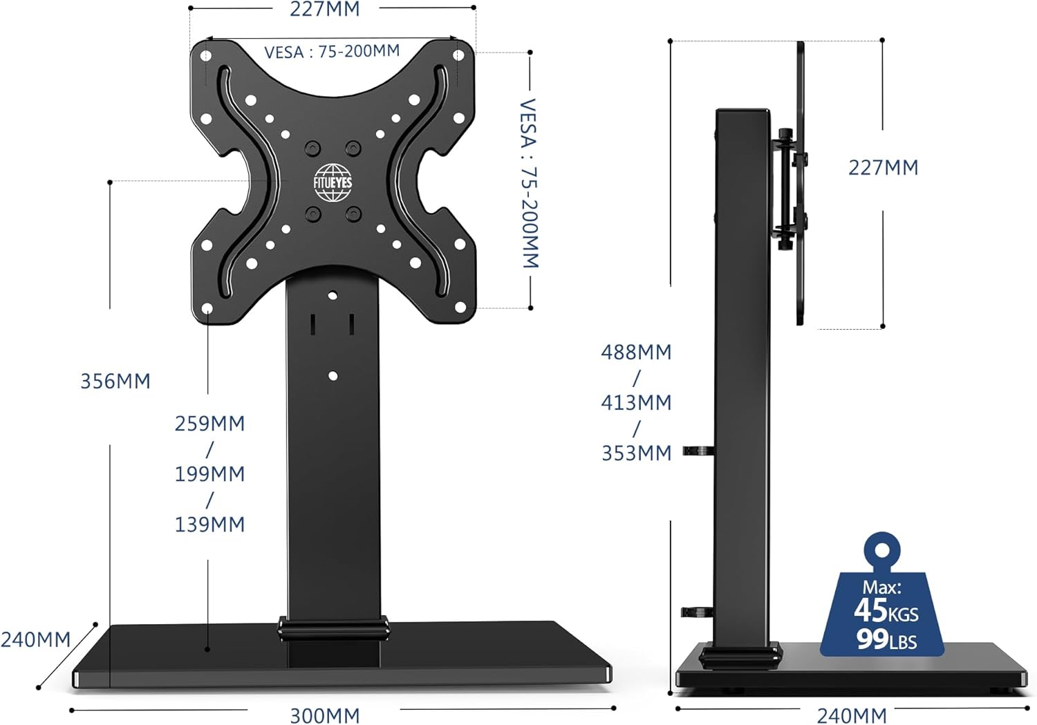 - 【Kompatibilität】Der TV Standfuss von FITUEYES ist geeignet für 19 "-42" Fernsehen (Curved & Flachbildwechsel), kompatibel mit VESA: 75x75/ 75x100 / 75x200 / 100x100 / 100x200 / 200x200mm Samsung LG Electronics Sony Sharp Panasonic Philips JVC
