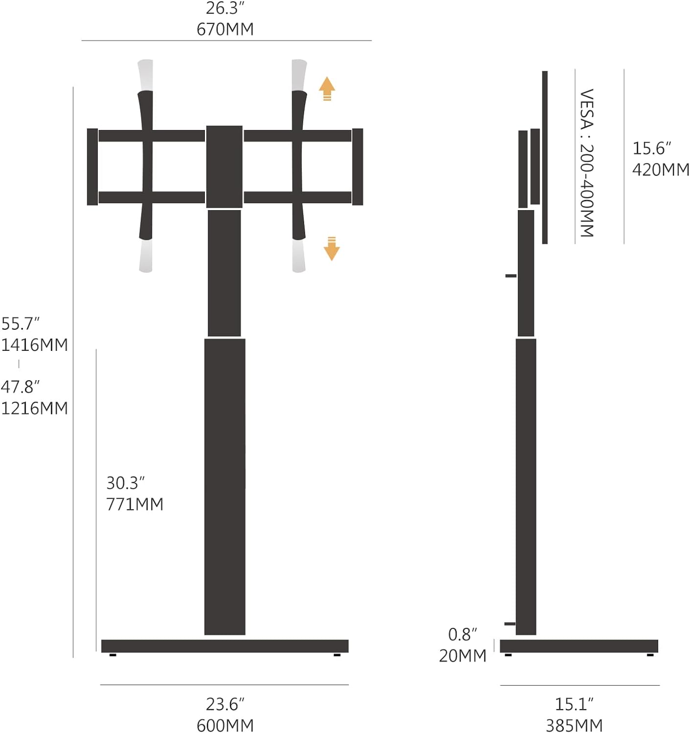 - 【HÖHENVERSTELLBAR UND SCHWENKBAR】6 Höhenstufen von 1133mm bis 1416mm durch 2 Arten der Höhenverstellung. Betrachtungswinkel um 30 Grad nach links oder rechts schwenkbar. Sie können den optischen Blickwinkel auswählen, um TV-Unterhaltung zu