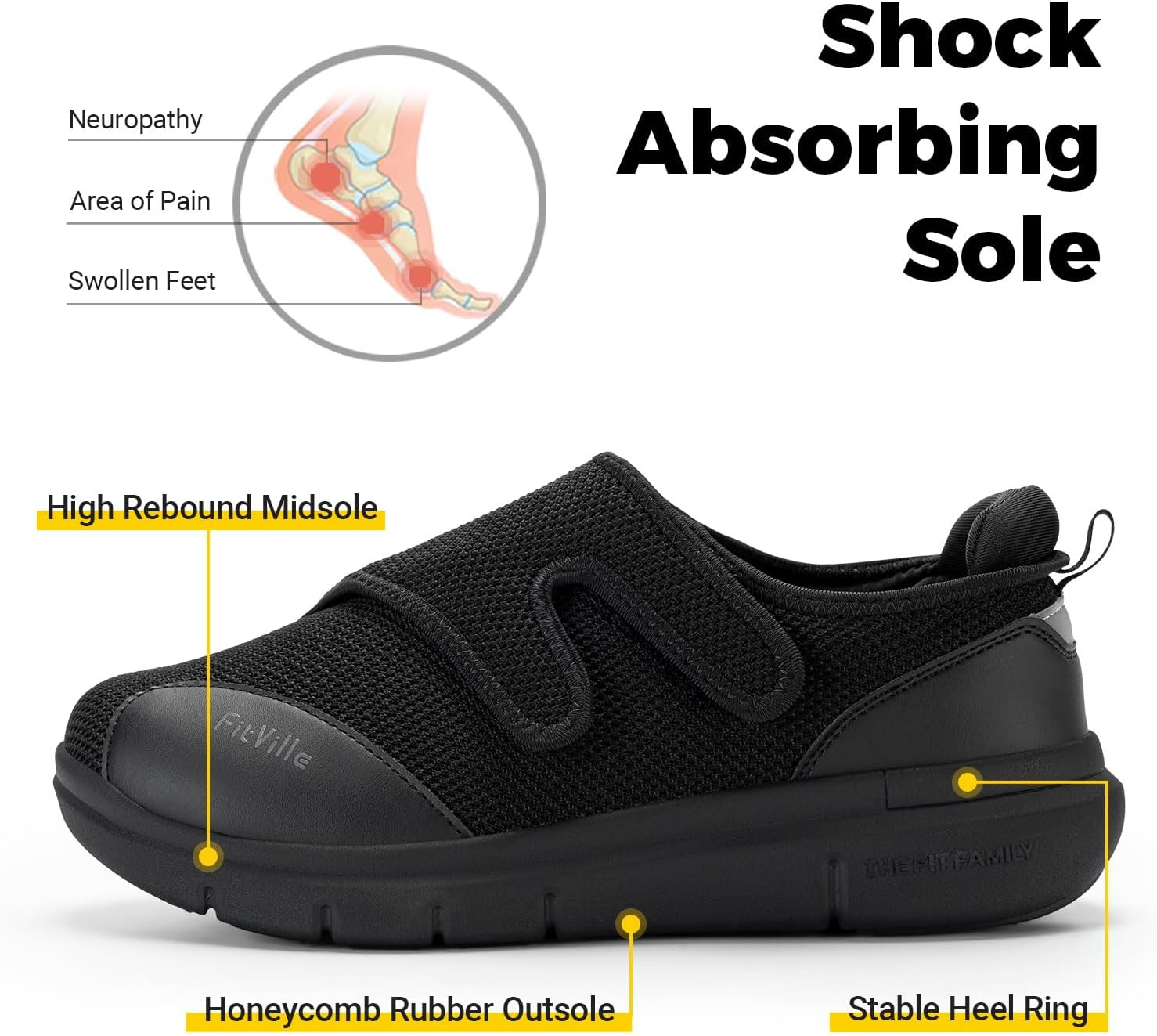FitVille Diabetiker Schuhe Herren Extra Weite Einstellbar Walking Schuhe für Fussschwellung erweiter