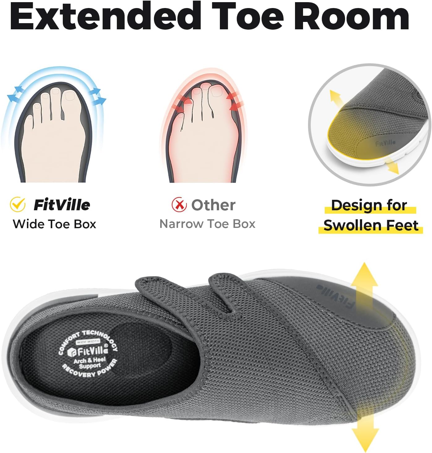 - 【Ideal Wahl】: Ein extra breiter und tiefer Zehenraum bietet ein Höchstmass an Komfort für Menschen mit breiten oder geschwollenen Füssen.