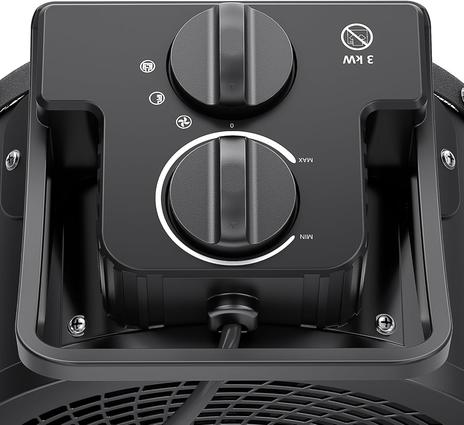 - 3 Modi: 0 Stufe – Aus / 1 Stufe – Kaltluft / 2 Stufe – Warmluft / 3 Stufe – Heissluft. Auf der Oberseite befindet sich ausserdem ein stufenlos einstellbarer Temperaturregler, um Ihren unterschiedlichen Anforderungen gerecht zu werden