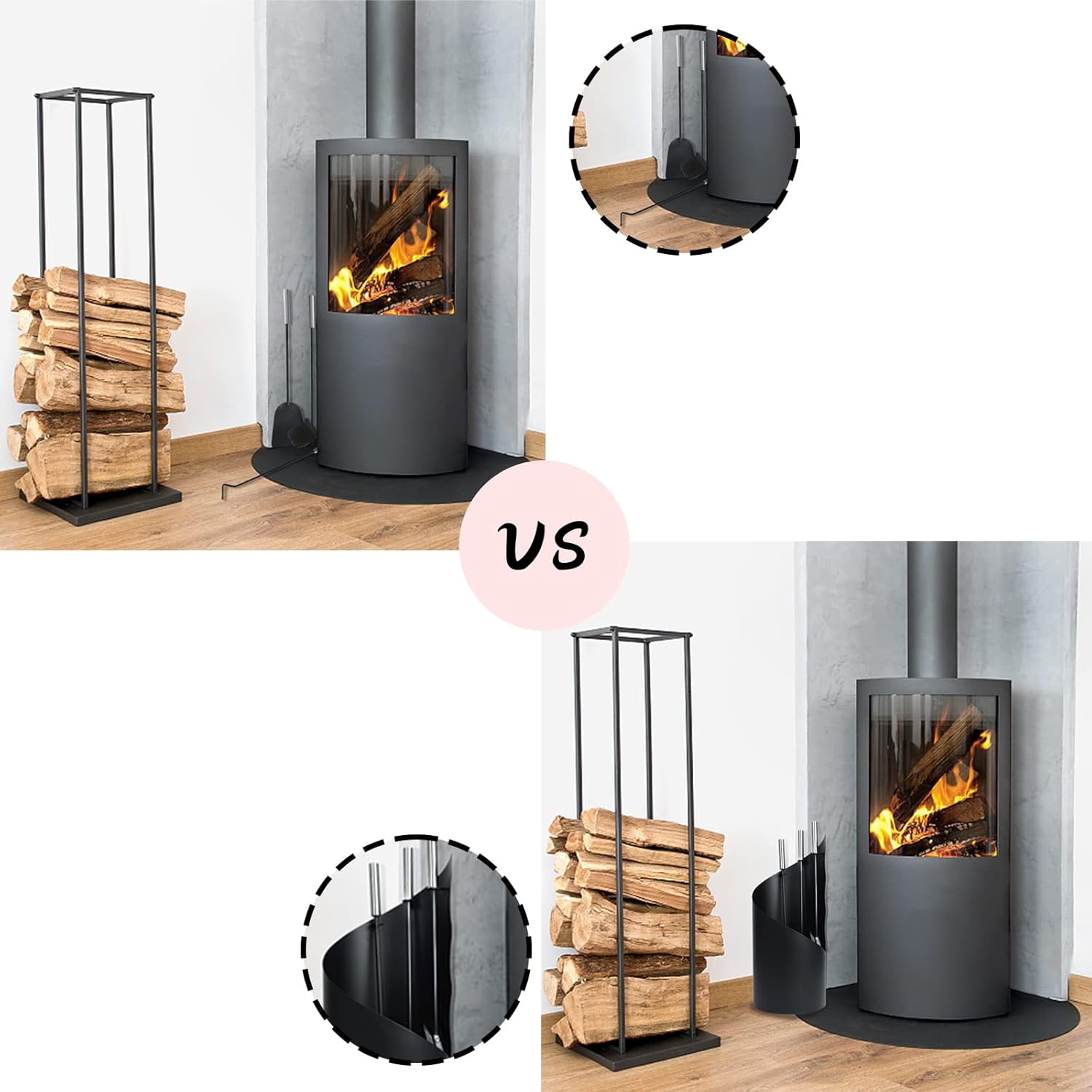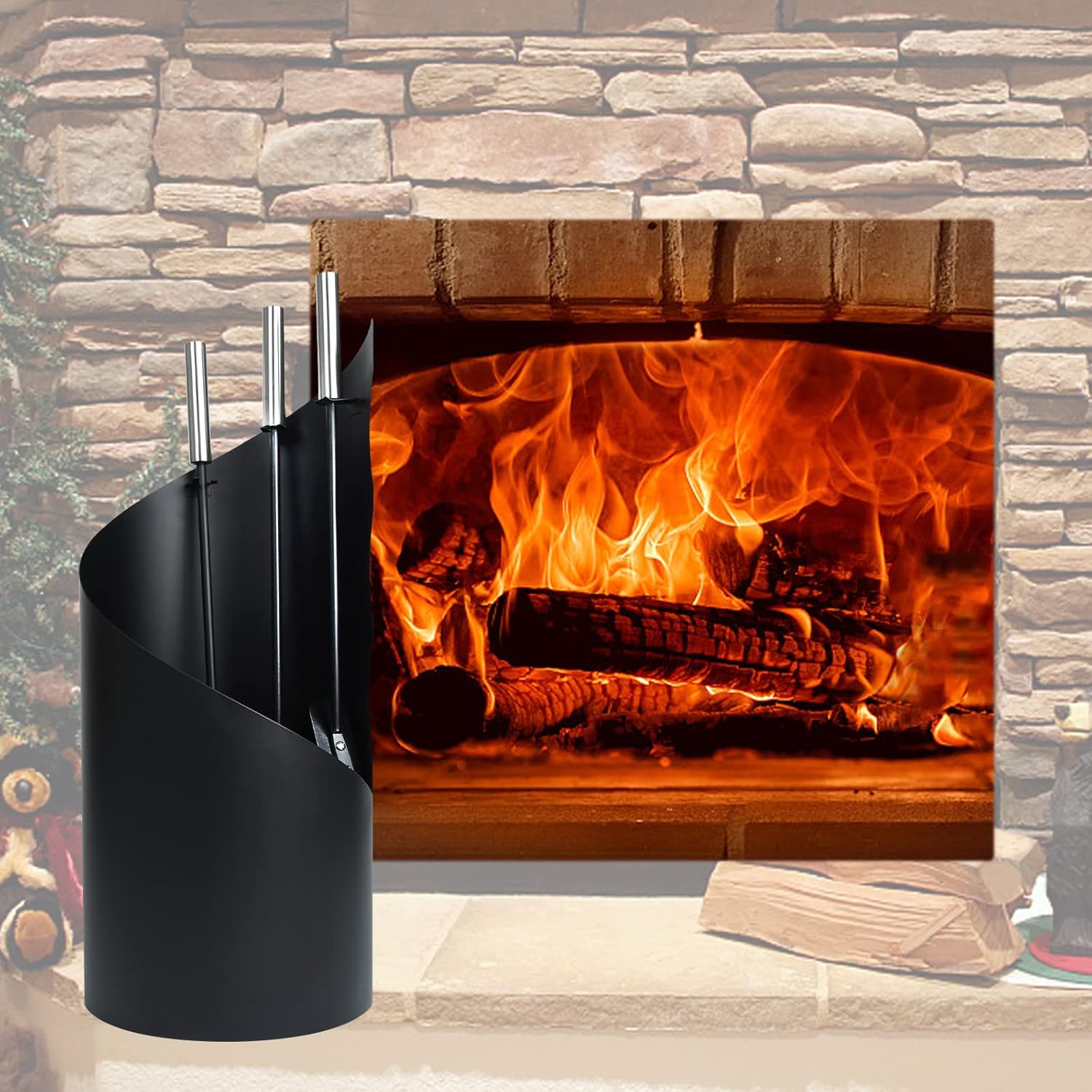 • Bequeme Aufbewahrung: Das spezielle Werkzeugregal verfügt über eine stabile Struktur, um sicherzustellen, dass Werkzeuge bei Nichtgebrauch ordentlich und sicher aufbewahrt werden können und der Kaminbereich aufgeräumt und ordentlich bleibt