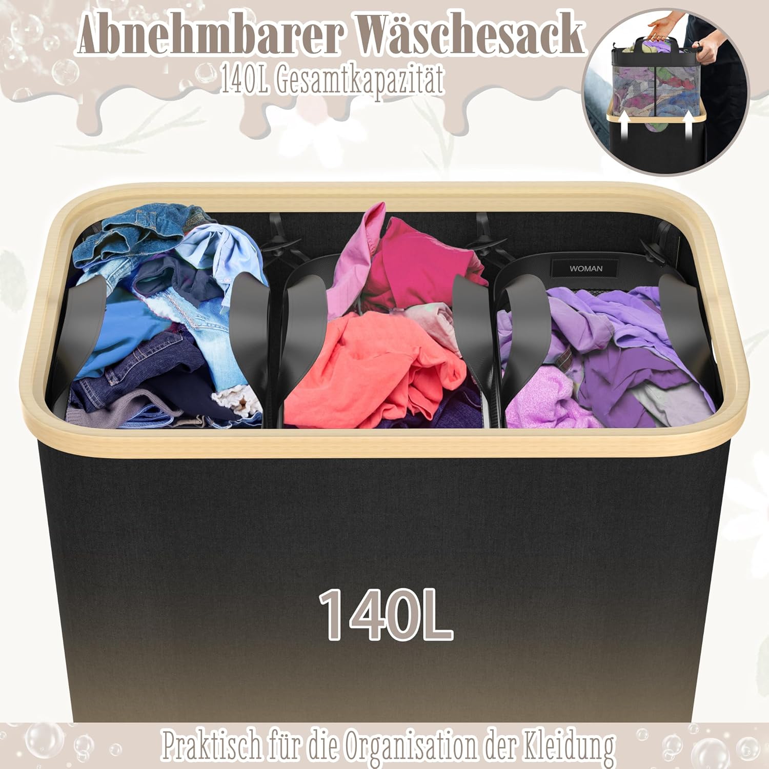 - Grosse Kapazität - Das Design mit 140L grosser Kapazität kann eine grosse Menge schmutziger Wäsche aufnehmen, um den täglichen Bedarf der Familie zu decken und die Probleme häufiger Reinigung zu reduzieren