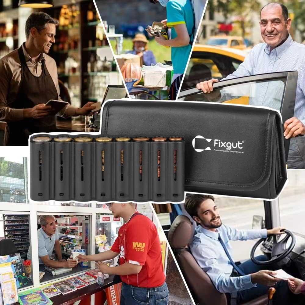 Fixgut® PU Leder Kellnerbörse mit Münzspender, Kellnertasche mit Euro-Münzsortierer und Tragegurt, i