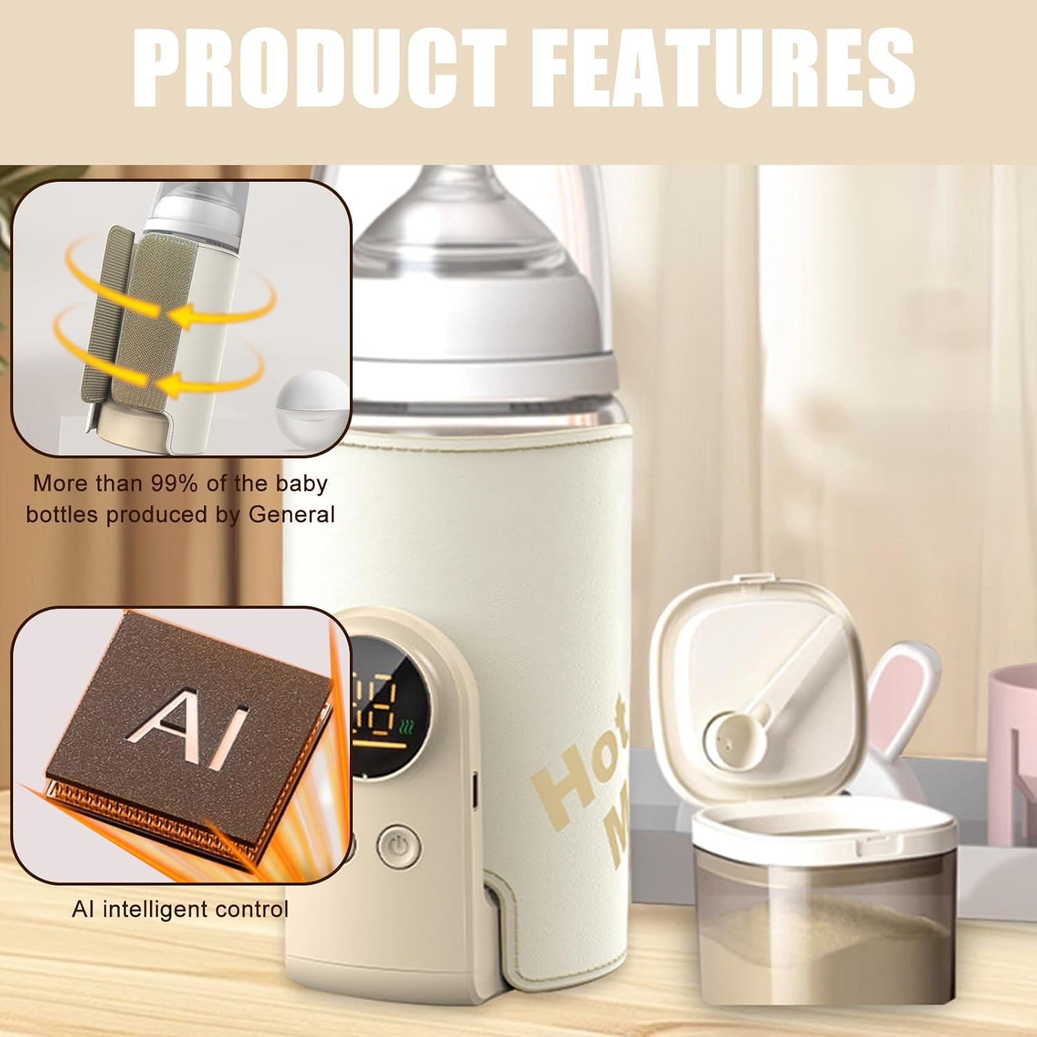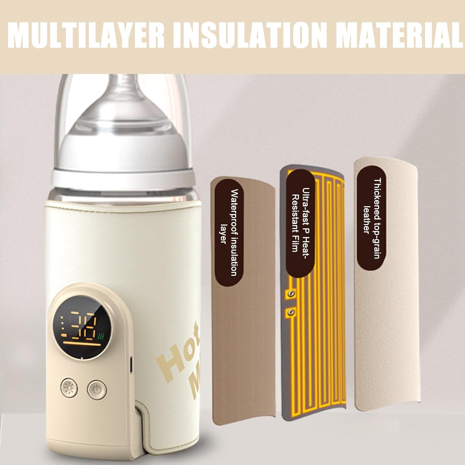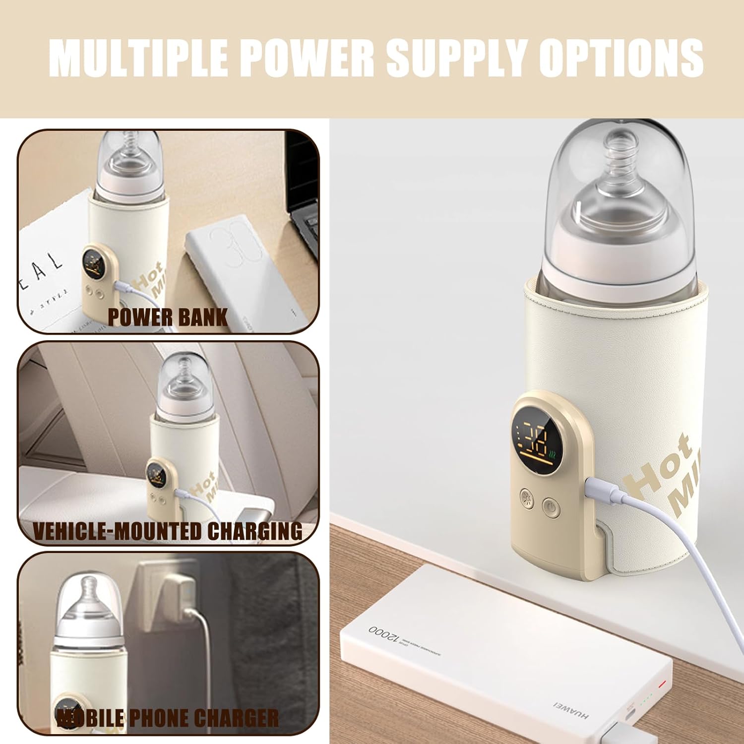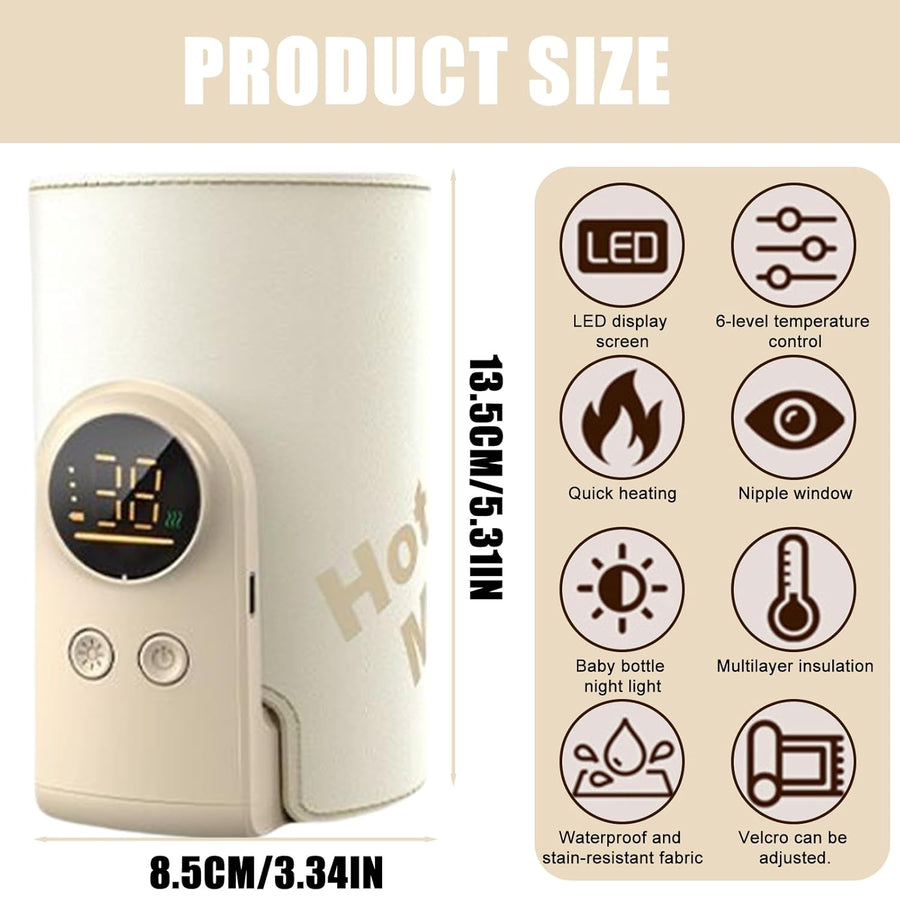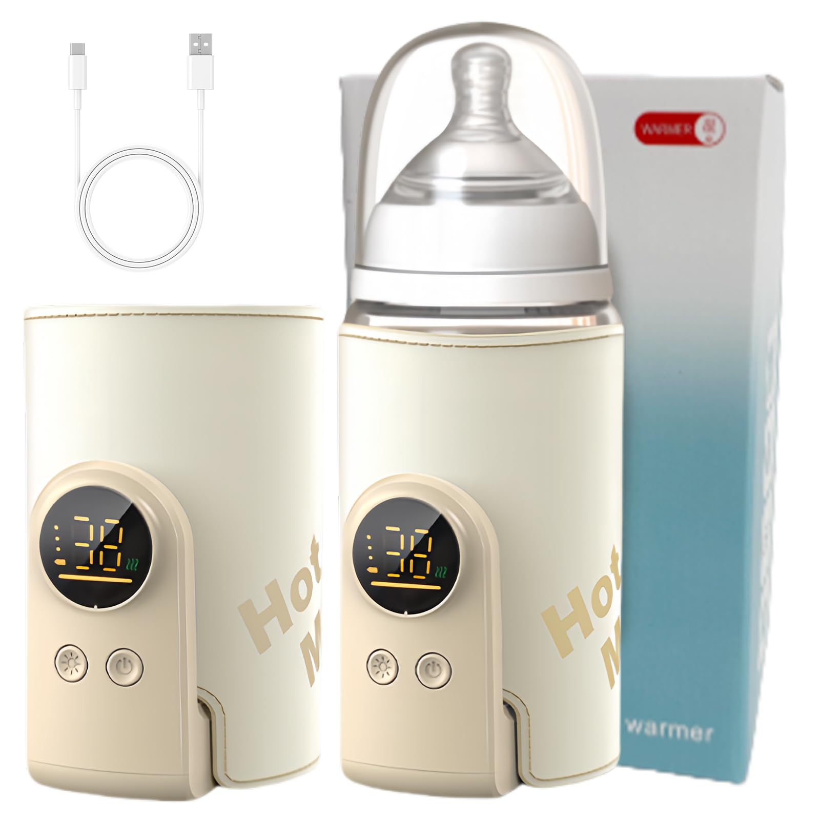 Flaschenwärmer Baby Unterweg 6 Einstellbare Temperatur 38-50℃, Tragbarer Fläschchenwärmer Baby mit L