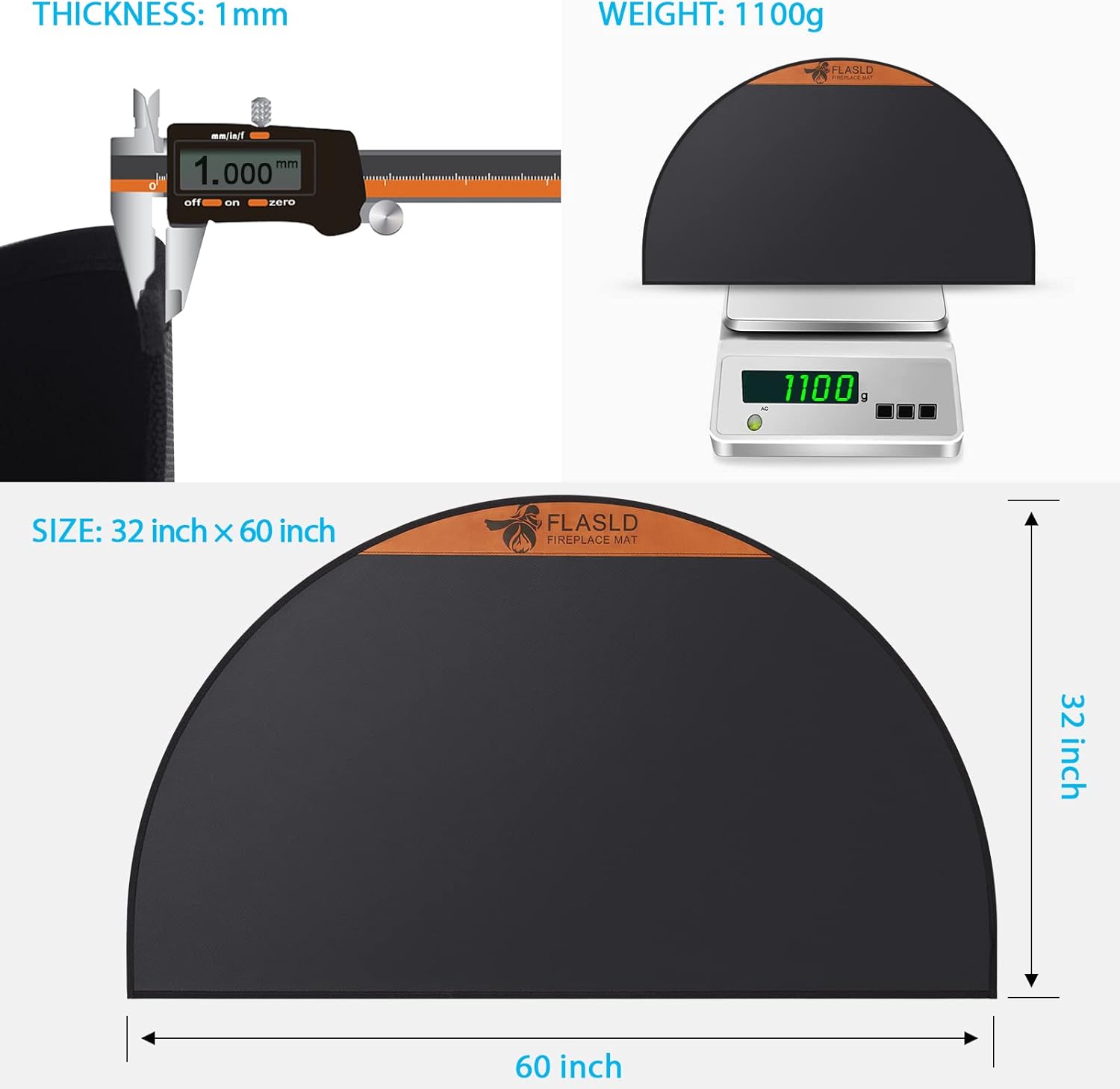 • 🔥【FLASLD Fireplace Mat Material】- Our fire resistent fireplace mat is made of double-sided silicone coated fiberglass fabric, allowing withstand temperature up to 1832 °F , fireproofing and insulating heat, which can protect your floors or carpets from being scorched or burned by fireplace sparks, ashes.