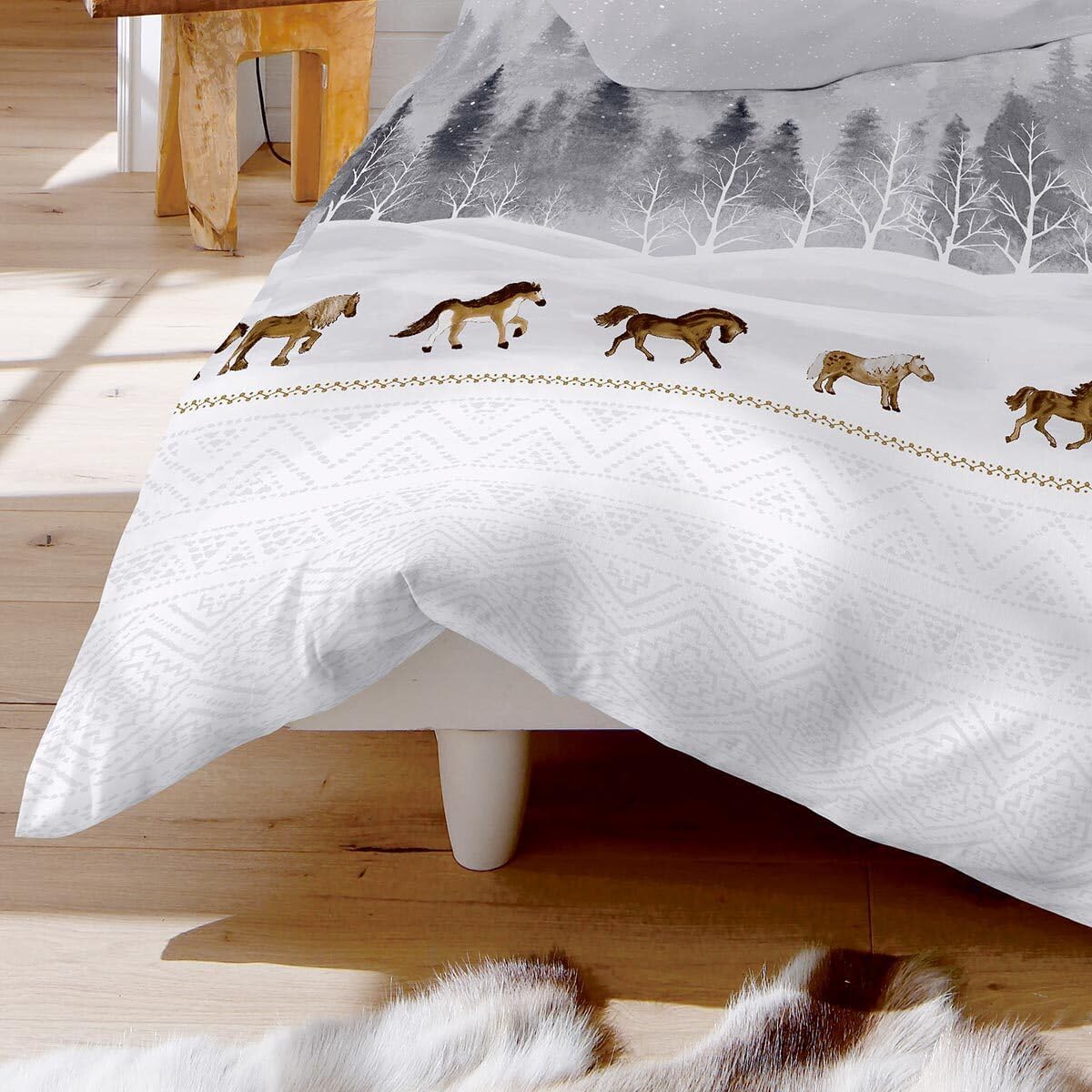 fleuresse Feinbiber Bettwäsche Aspen Pferde Silber 1 Bettbezug 135 x 200 cm + 1 Kissenbezug 80 x 80