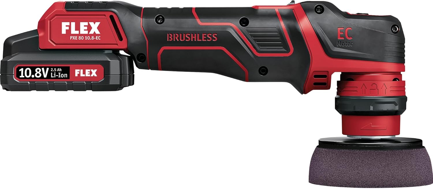 Flex Akku Polierer 10,8 V (Poliermaschine) PXE 80 10,8-EC/2,5 Set - 418102, Schwarz / Rot