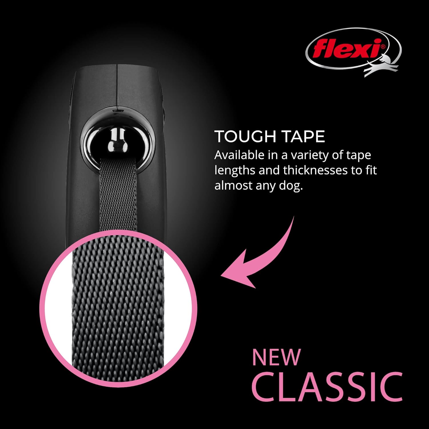 - Die 7,9 m lange Flexi-Tape-Leine, die mit der Multi-Box und/oder dem LED-Beleuchtungssystem kombiniert werden kann, für Hunde bis zu 50 kg