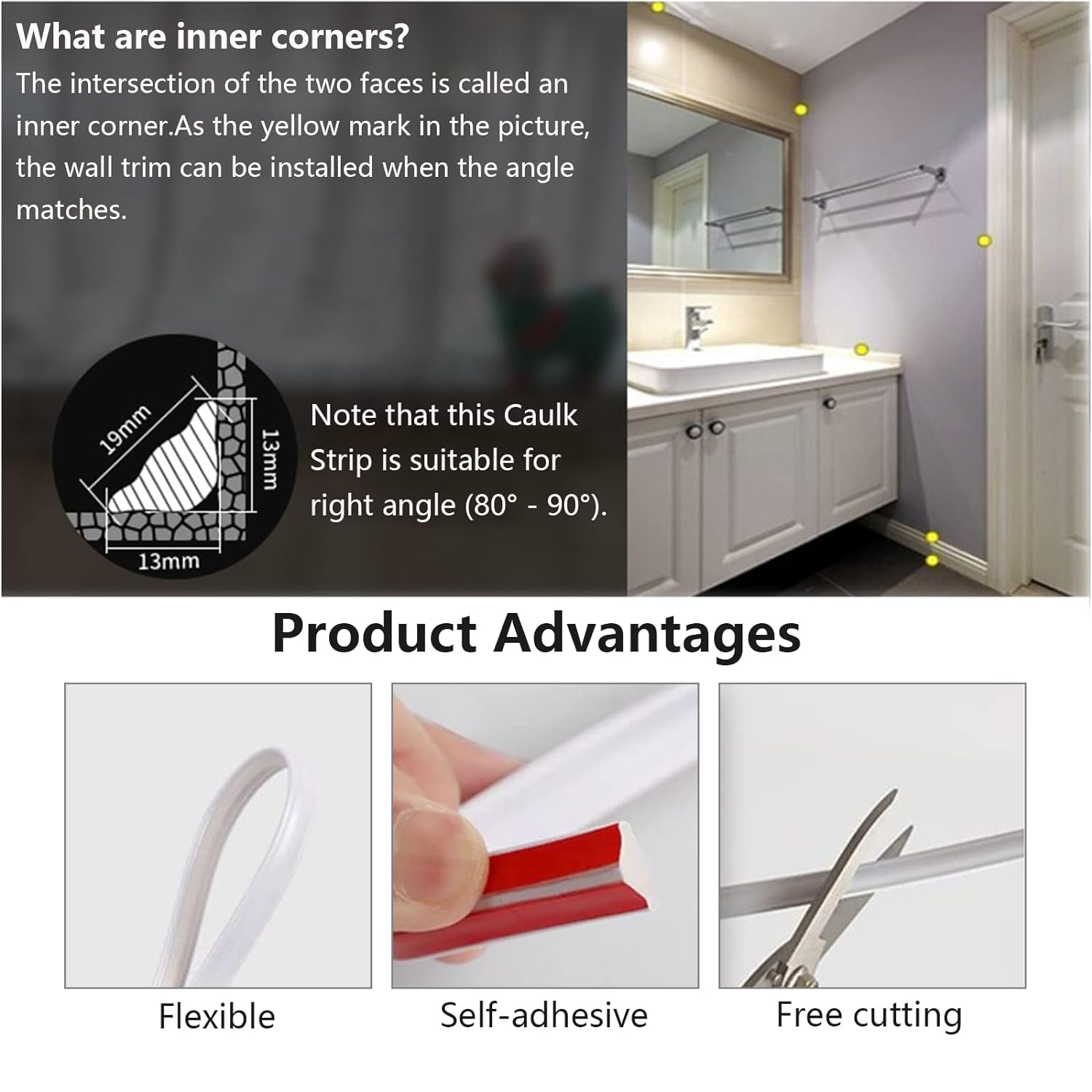 - [Selbstklebende Sockelleiste]Erstellen Sie glatte Kanten und Übergänge mit Flexible Selbstklebender. Sie können diese Zierleiste an den Kanten von Treppen, Küchenwänden, Schränken, Spiegeln oder Decken verwenden.