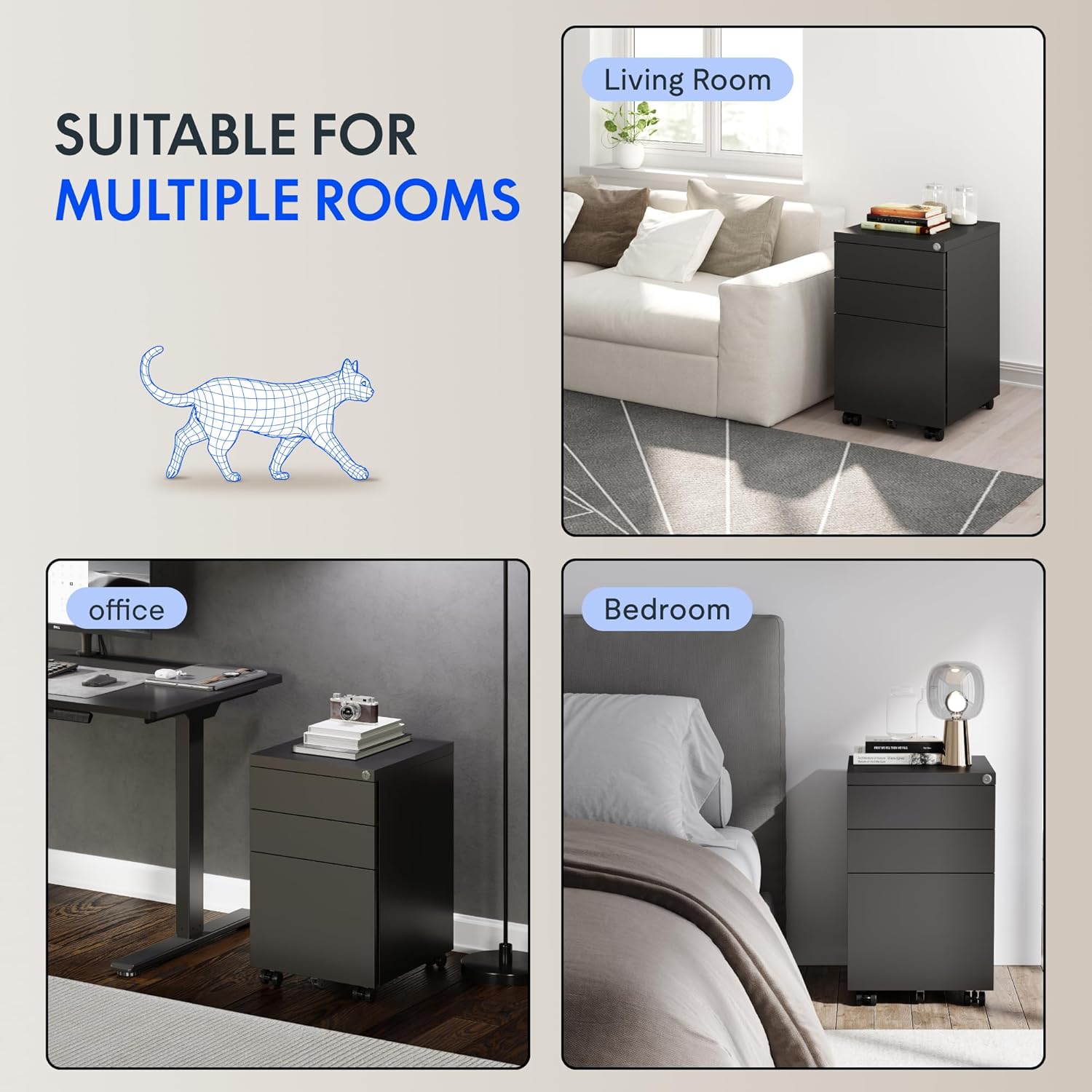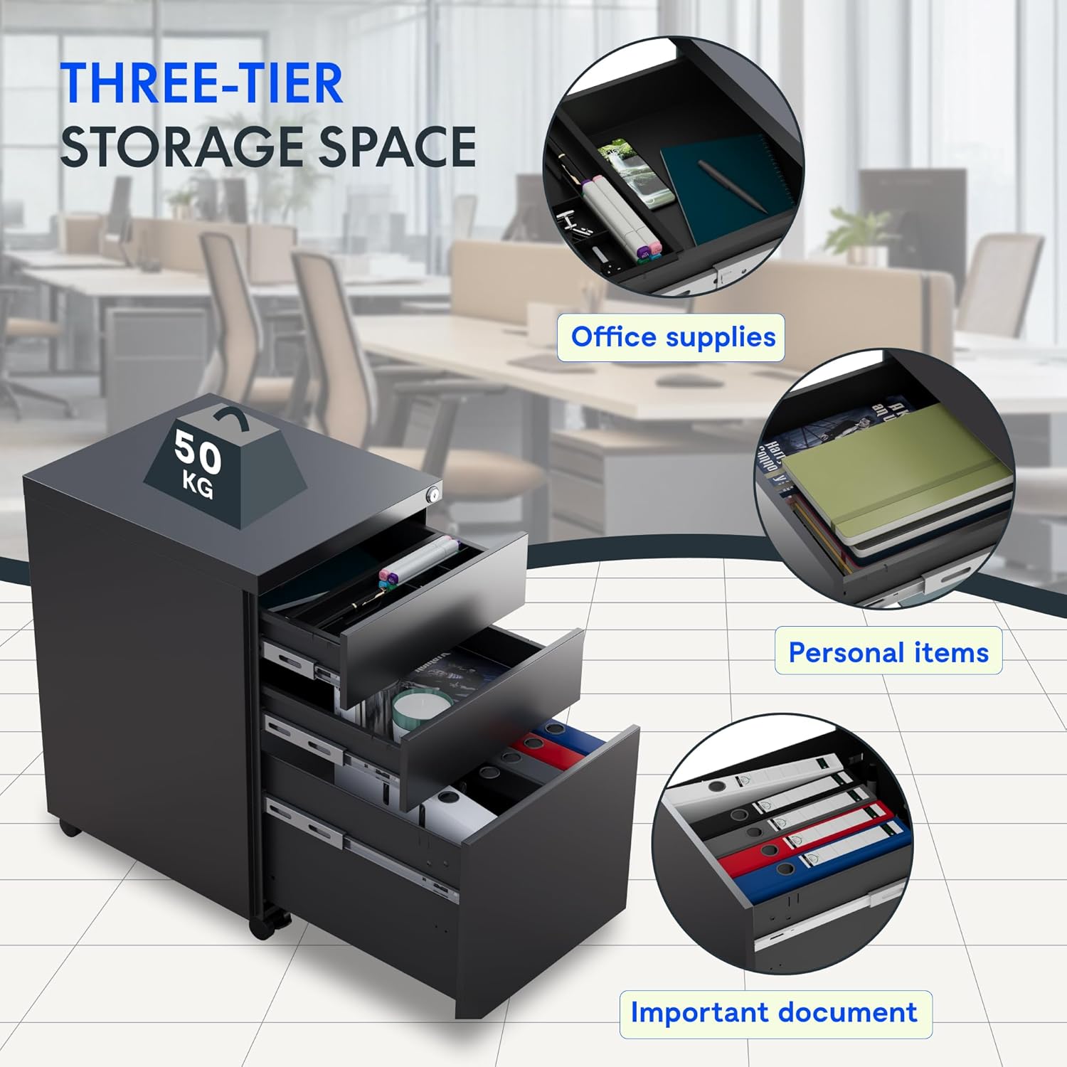 - GROSSER STORAGEPLATZ FÜR DIE BEDÜRFNISSE: Wenn in Ihrem Arbeitszimmer oder Büro immer Unordnung herrscht, kann dieser mobile Sockel mit 3 Schubladen Ihnen helfen, Ihre Akten, Bücher und Papiere zu ordnen. Der Schrank verfügt ausserdem über einen