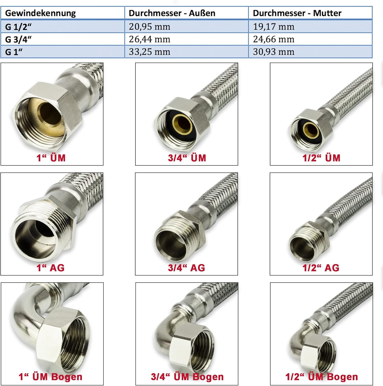 - Material Innenschlauch: EPDM Gummi / Material Anschlüsse: Messing vernickelt