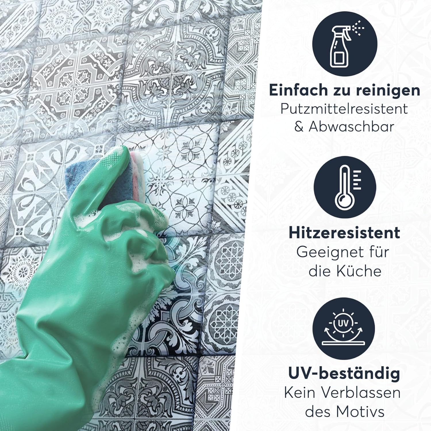 • LANGLEBIG UND ROBUST - Nahezu unbegrenzt haltbar, Wasserfest, Kratzfest, Putzmittelbeständig, Hitzebeständig bis 80 °C, kein Ausbleichen! Jederzeit wiederablösbar - Ideal für Mietwohnungen!