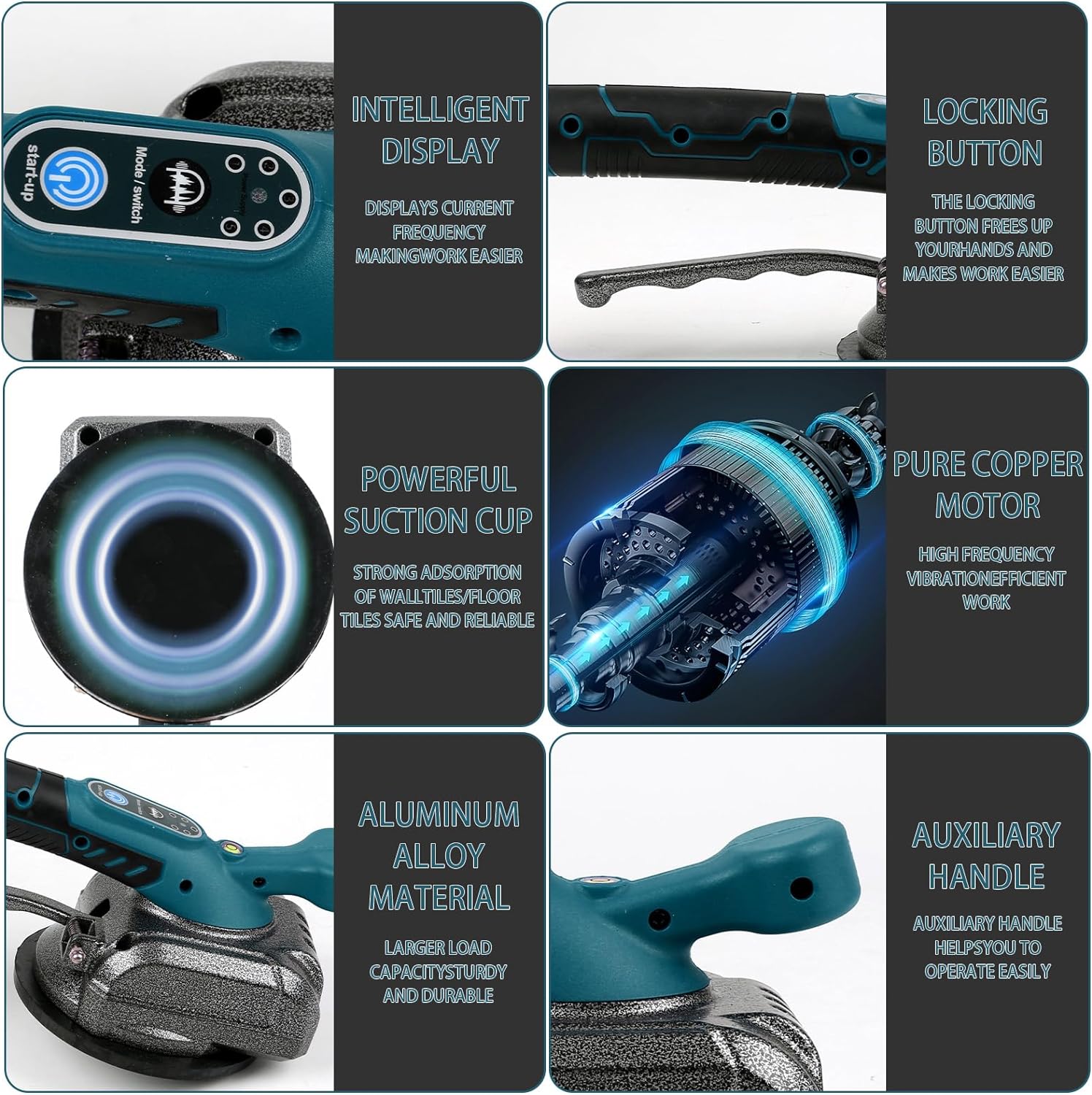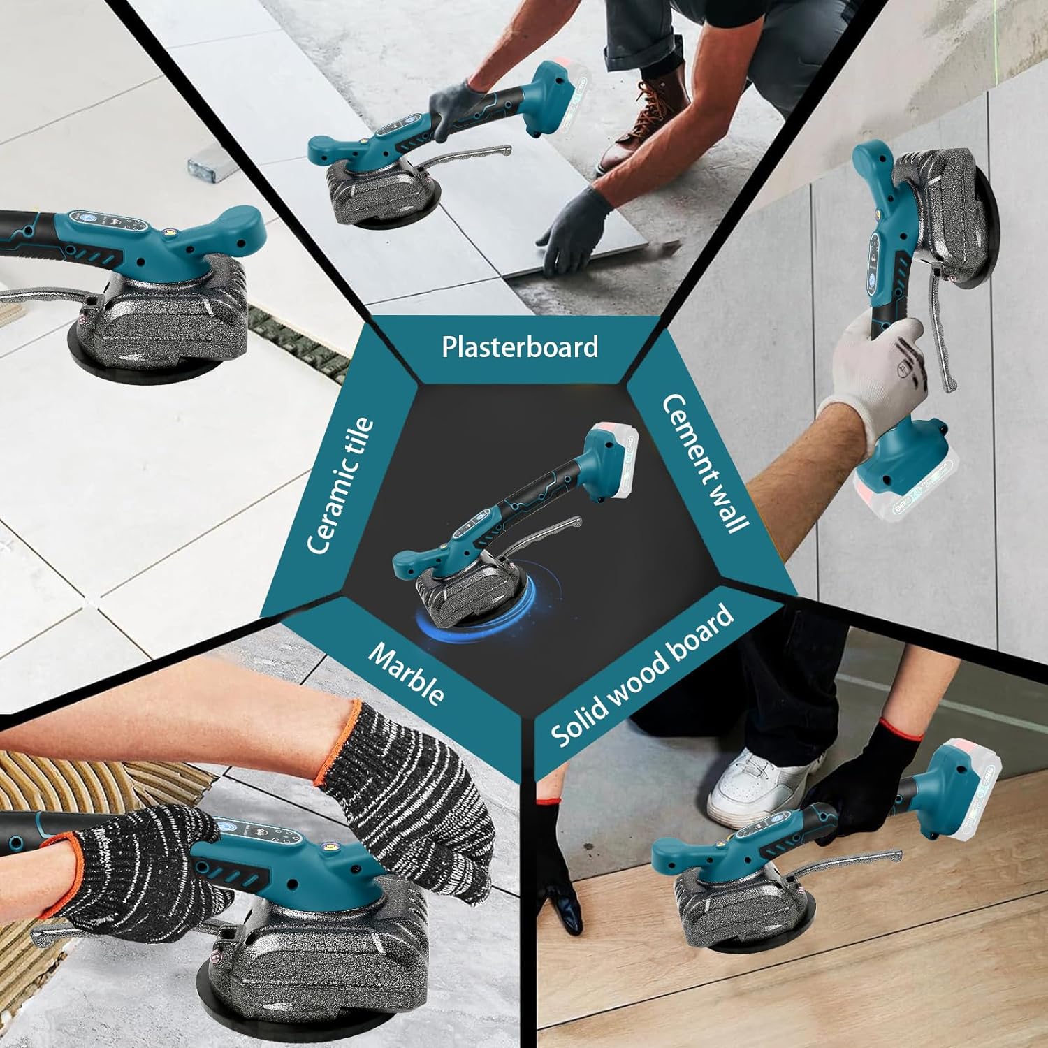 Fliesenvibrationsmaschine für Makita 18v, Fliesenleger-Vibrationsgerät mit 4,7" Saugnapf, 5 Gänge, e