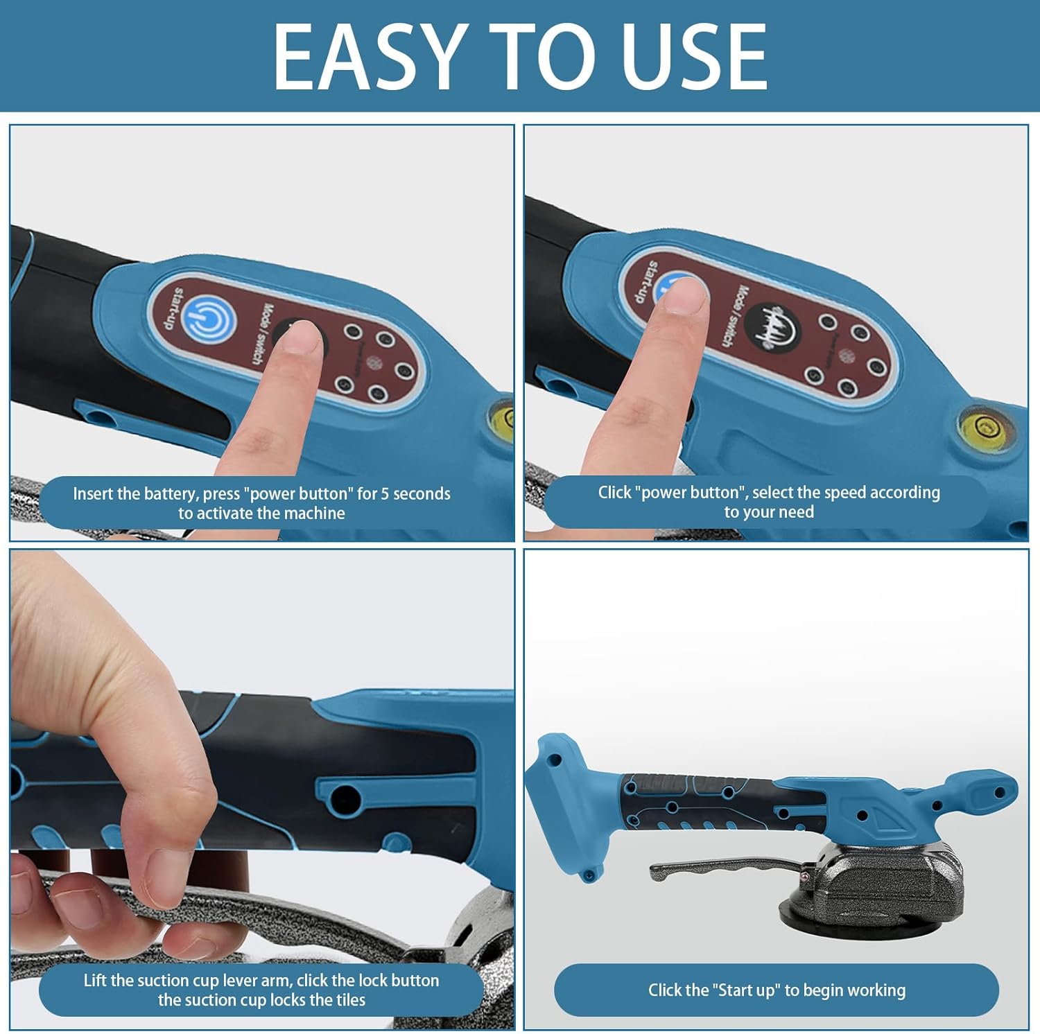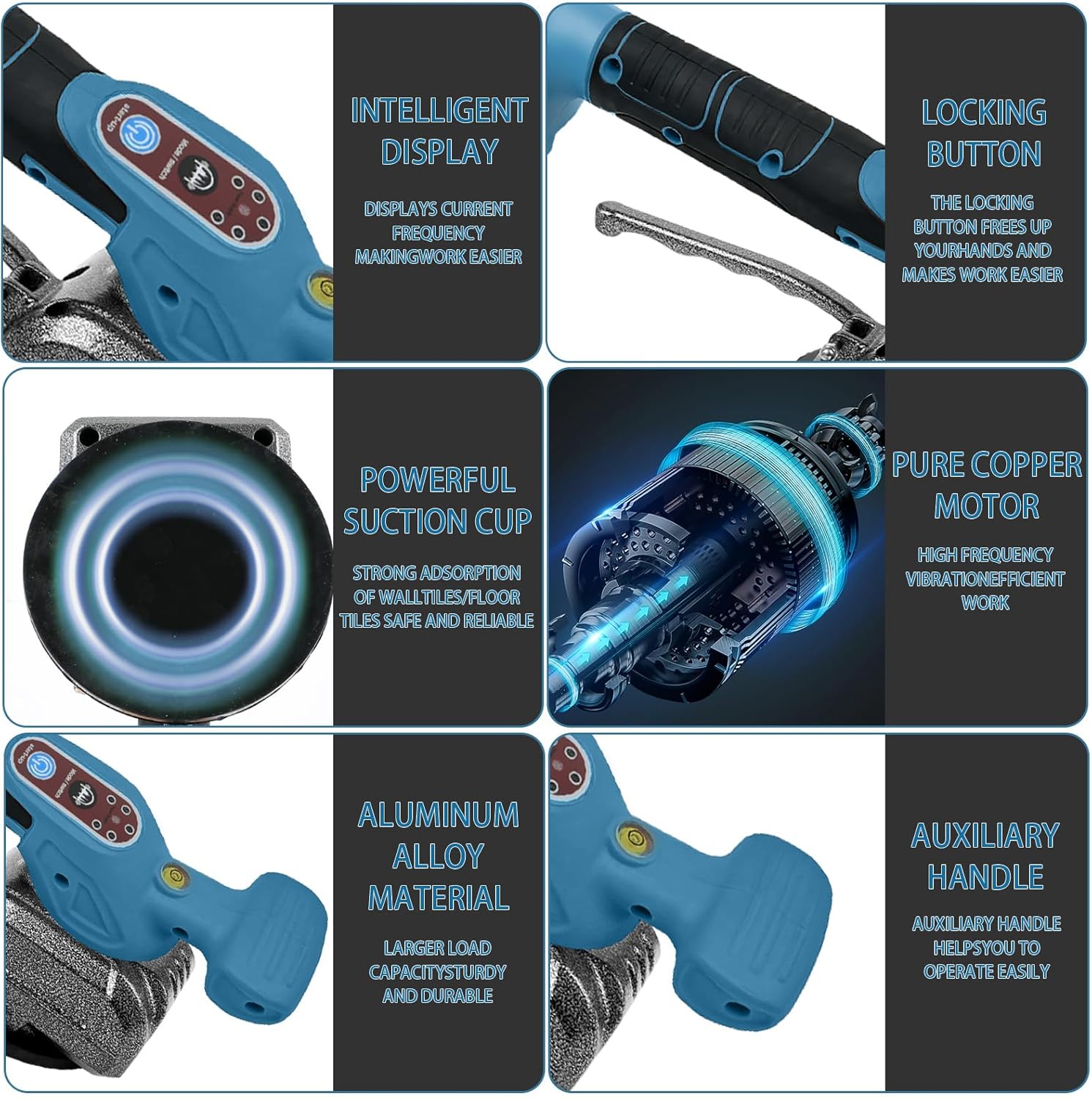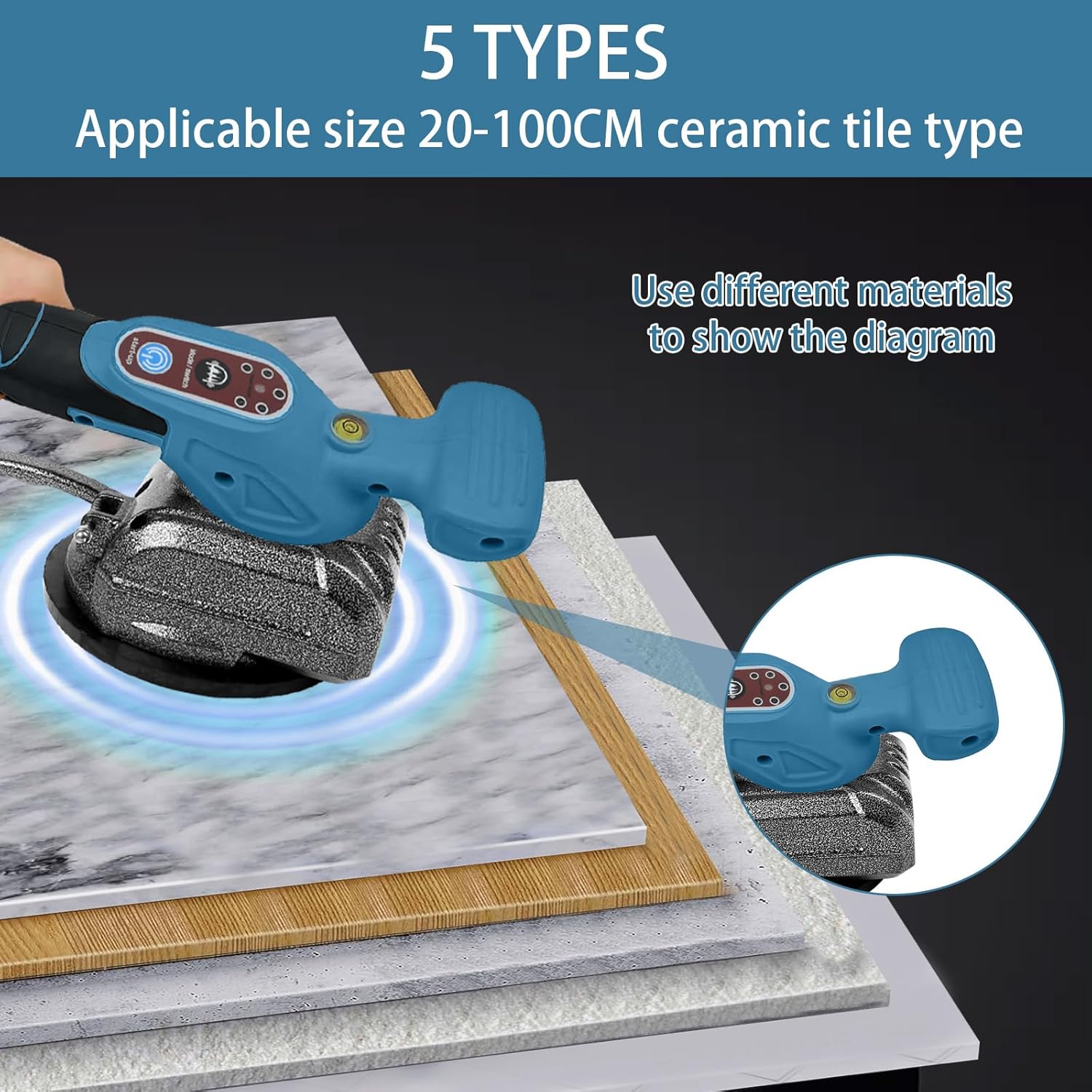 - 5 Einstellbare Geschwindigkeit: Der Fliesenlegerrüttler hat 5 Vibrationsstufen, die je nach Grösse der Fliese und der Dicke des Putzes eingestellt werden können. Drücken Sie einfach "+" oder "-", um die Geschwindigkeit zu ändern. Die