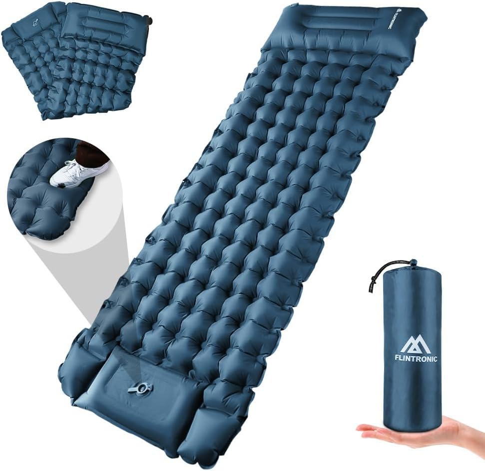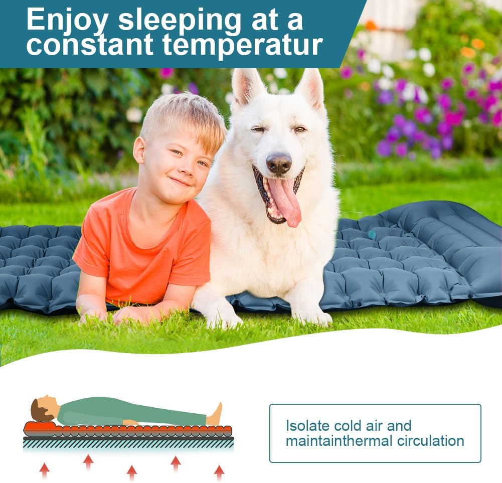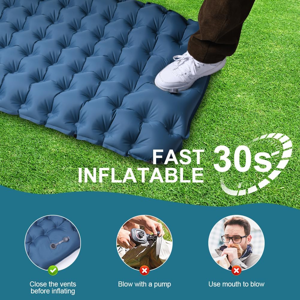 - 🏕️【Camping Isomatte Kleines Packmass】 Camping Isomatte Kleines Packmass die dicke zeltmatratze wird mit einem Mini-Fusspressen-Inflator geliefert. Verwenden Sie einfach Ihren Fuss, um das Luftkissen in 1 Minute vollständig aufzublasen, was mehr